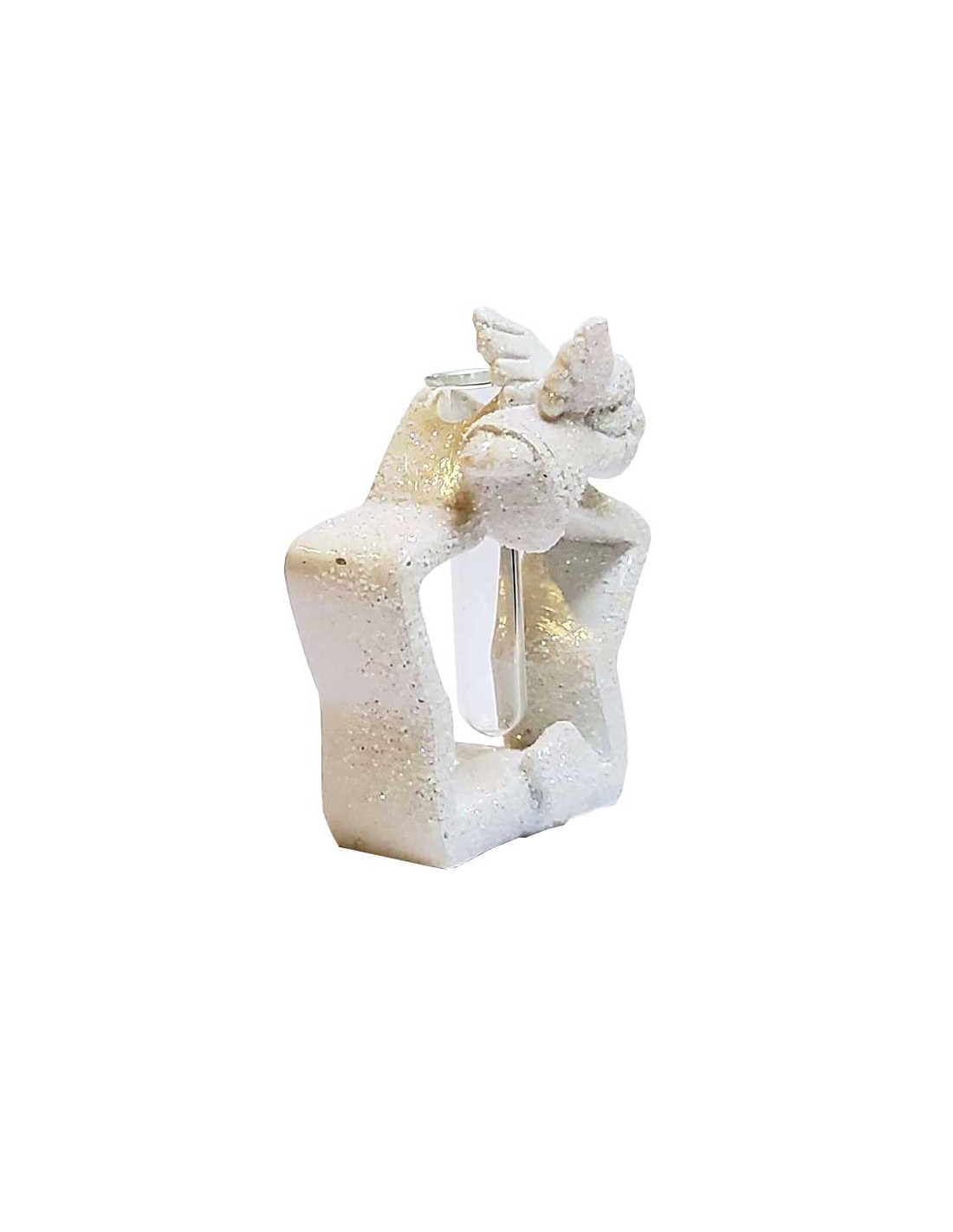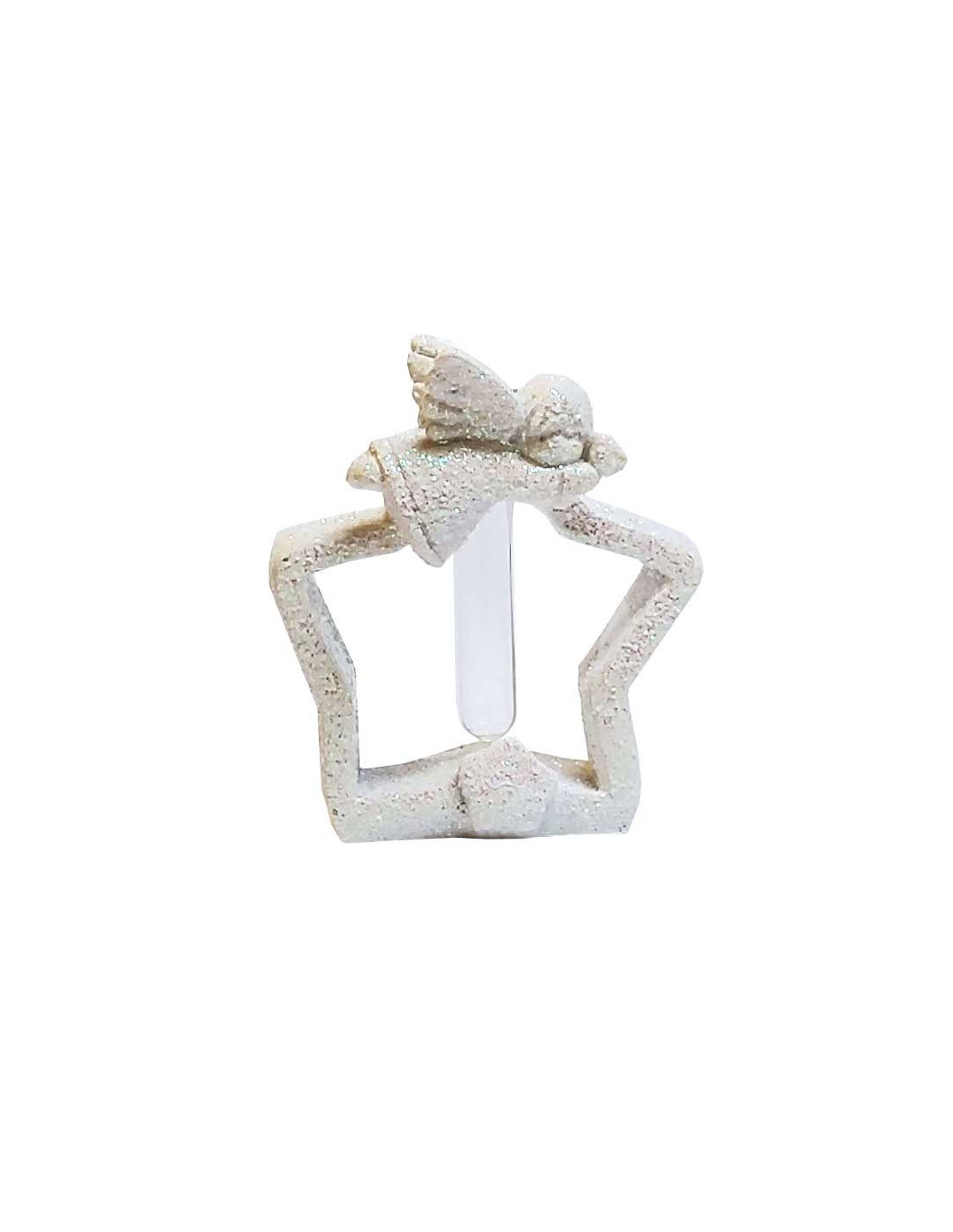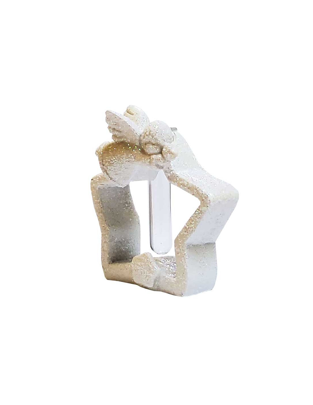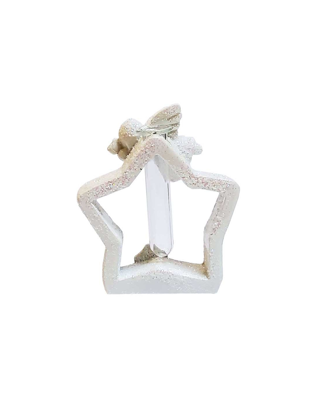 En forme d'étoile, il est surmonté d'un angelot volant, saupoudré de paillettes décoratives. La fiole en verre est prévue pour contenir le parfum ou les huiles essentielles ainsi que les bâton qui en diffuseront l'odeur.
