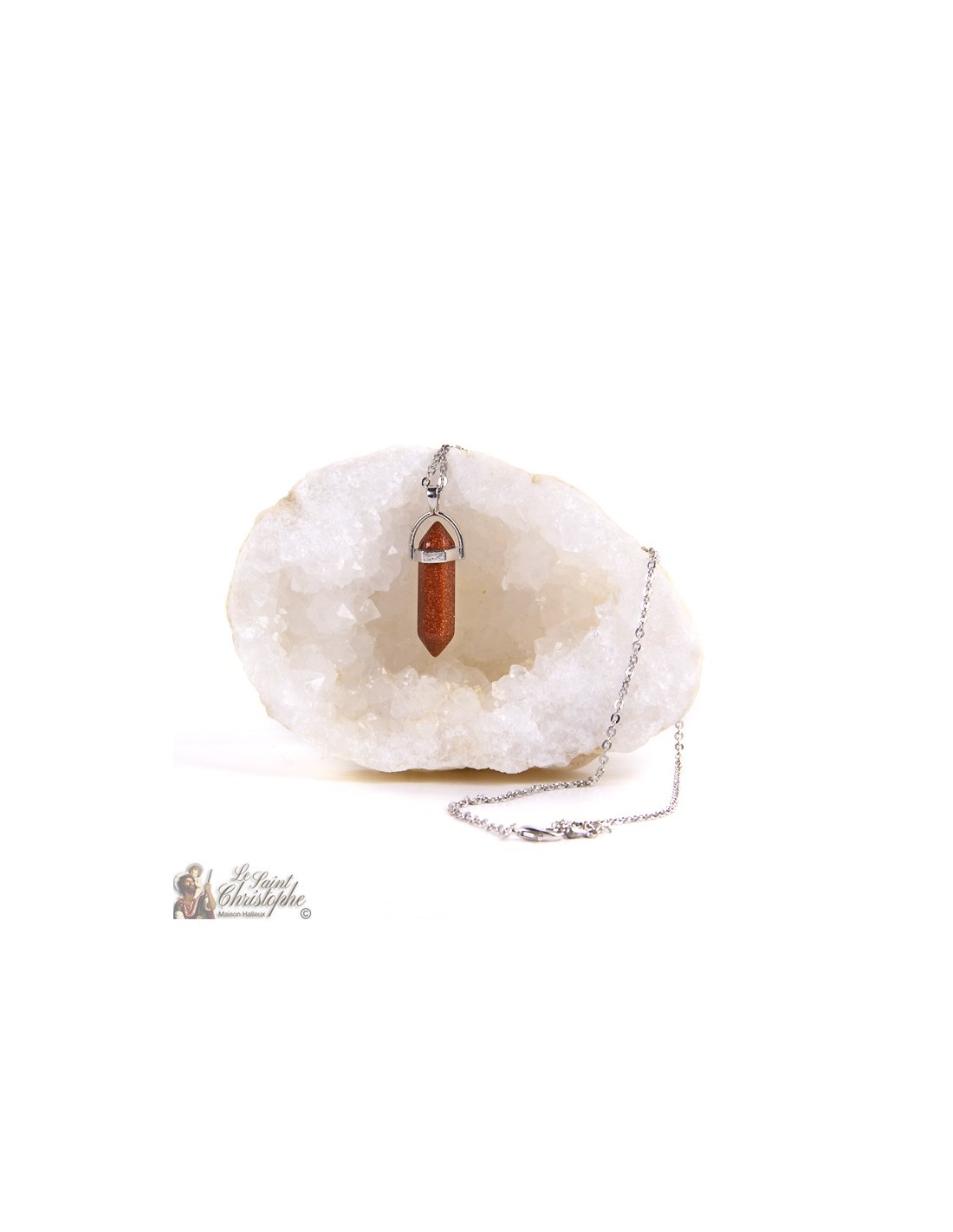 Collier en métal argenté avec pendentif en pierre fine, du sable doré.