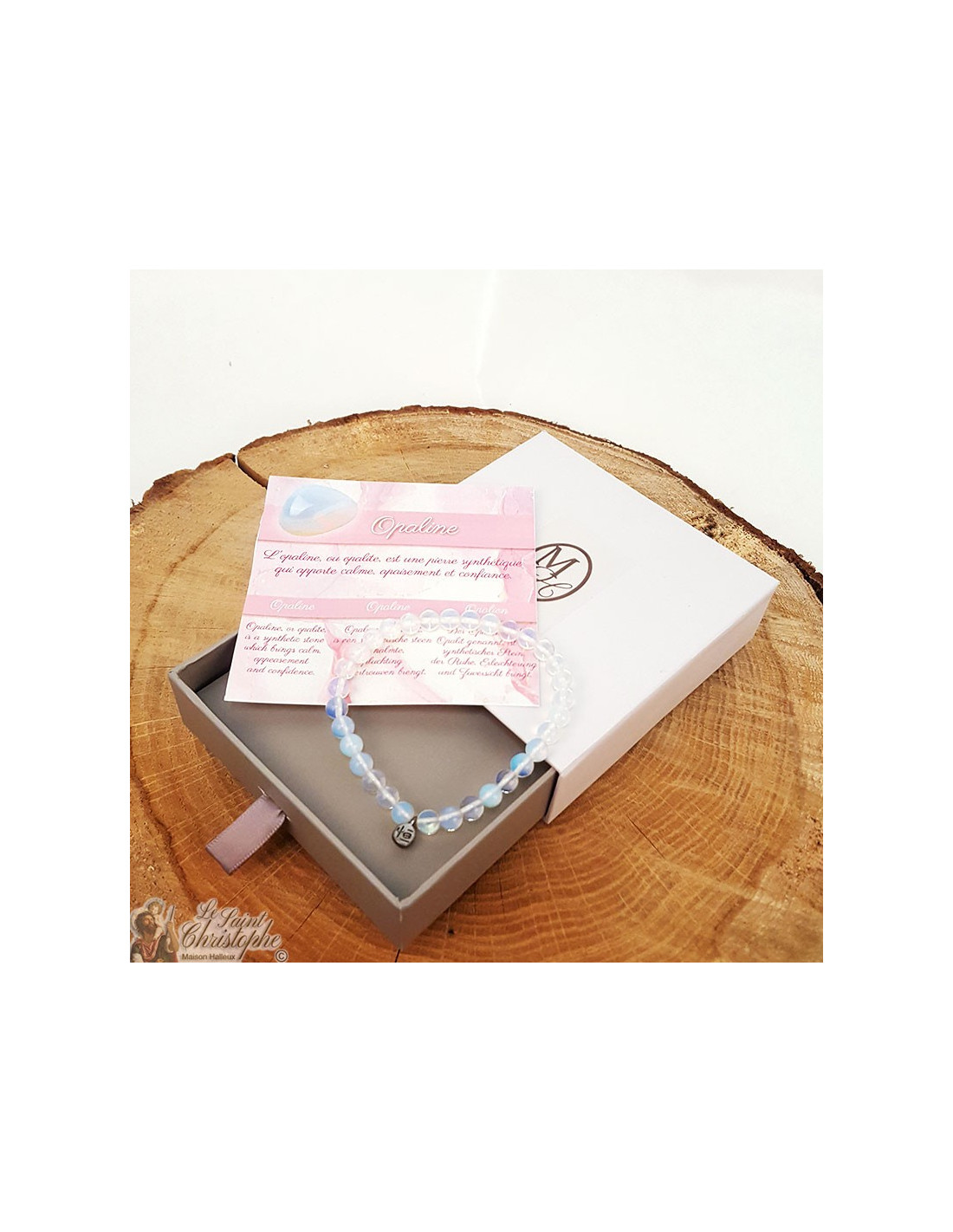 D'un blanc laiteux aux reflets de toutes les couleurs, l'opaline, parfois aussi appelée opalite, est une pierre qui aide à s'exprimer et à mieux gérer ses émotions et son stress. Elle toute indiquée pour les adolescents et jeunes adultes car elle permet un meilleur fonctionnement hormonal et maintient un bon niveau d'énergie. Sa principale vertu est sa force sereine qui nous relaxe rien qu'en l'admirant. Par cette relaxation qu'elle apporte, elle encourage aussi à mieux se connaître et se faire confiance, permettant de développer son estime de soi.