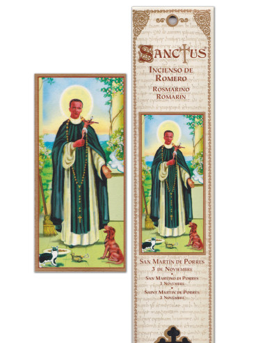 Cette pochette, à l'image de Saint martin, entouré d'animaux, contient 15 bâtonnets d'encens naturel au parfum grisant de romarin, une évocation délicate des fragrances de Provence. On le prie principalement le 3 novembre. L'encens au romarin lié à Saint Martin est réputé pour attirer la prospérité financière dans le foyer ou le commerce.