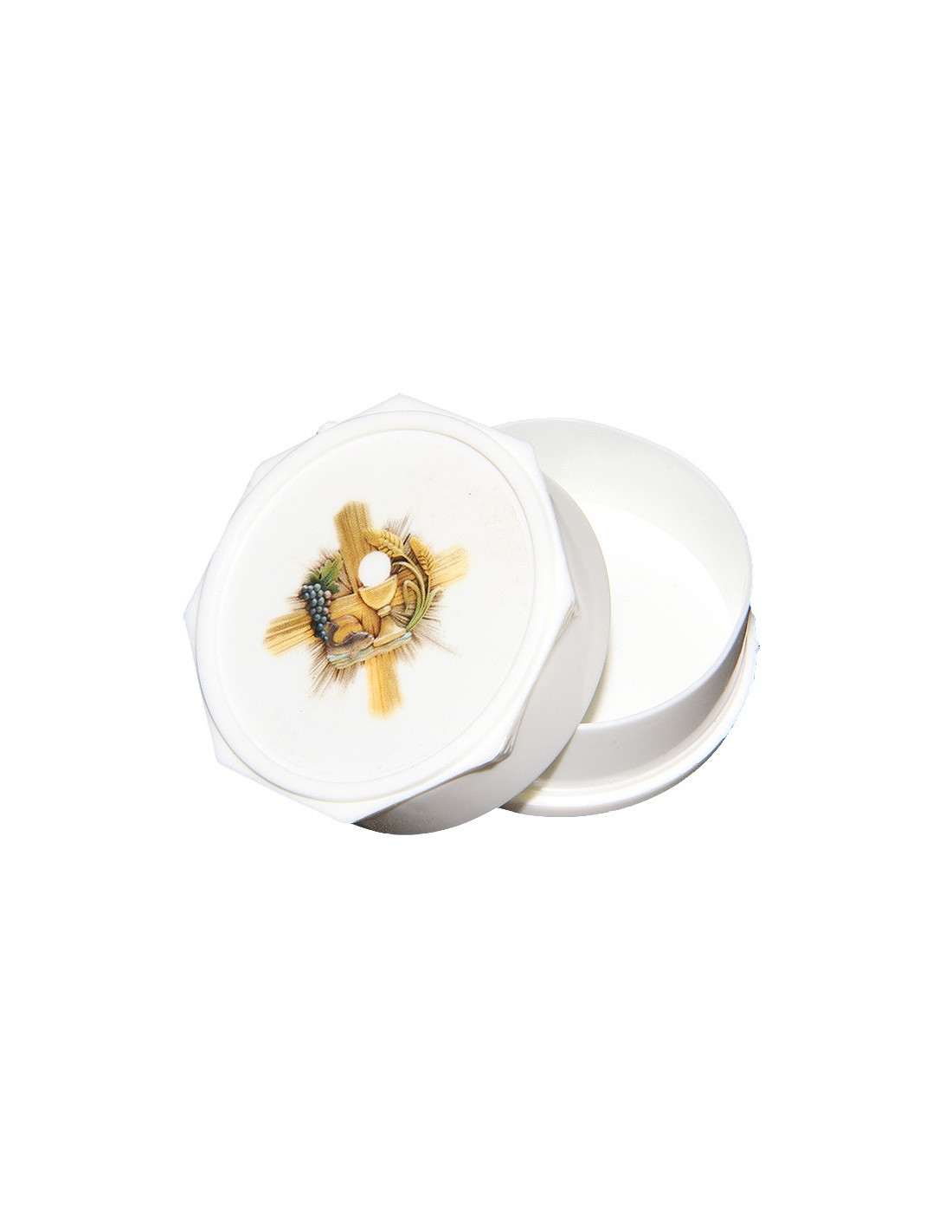 Pyxide en plastique pouvant contenir un chapelet, dizaine, hosties...