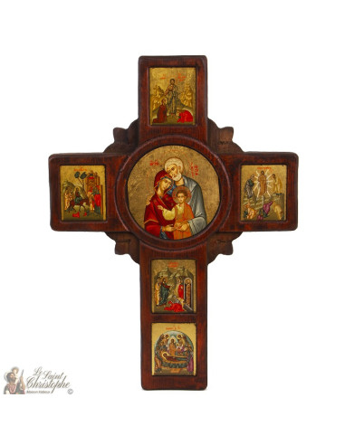 Icône croix 37 x 24 cm - Sainte Famille et scènes bibliques