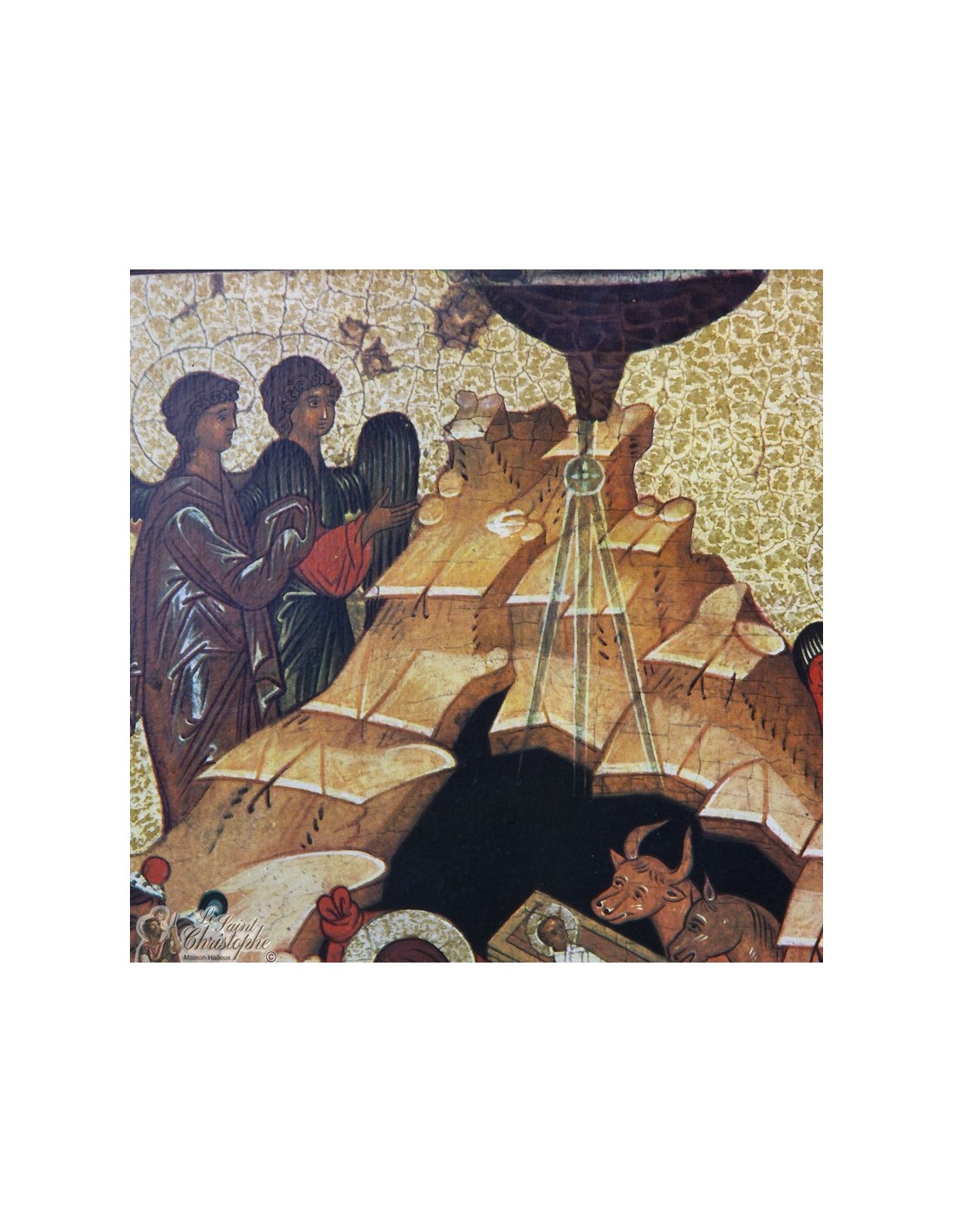 Cette icône de la Nativité du Seigneur Jésus Christ, fidèle à la tradition byzantine du XVe siècle, représente la scène sacrée de la naissance de Jésus, entouré de la Vierge Marie, des anges, bergers et mages. Chaque détail porte un sens théologique profond, dans une composition riche de symboles. Le style ancien et les teintes chaudes confèrent à cette pièce une forte dimension spirituelle. Un objet de prière autant que de beauté, pour tout intérieur religieux ou recueillement personnel.