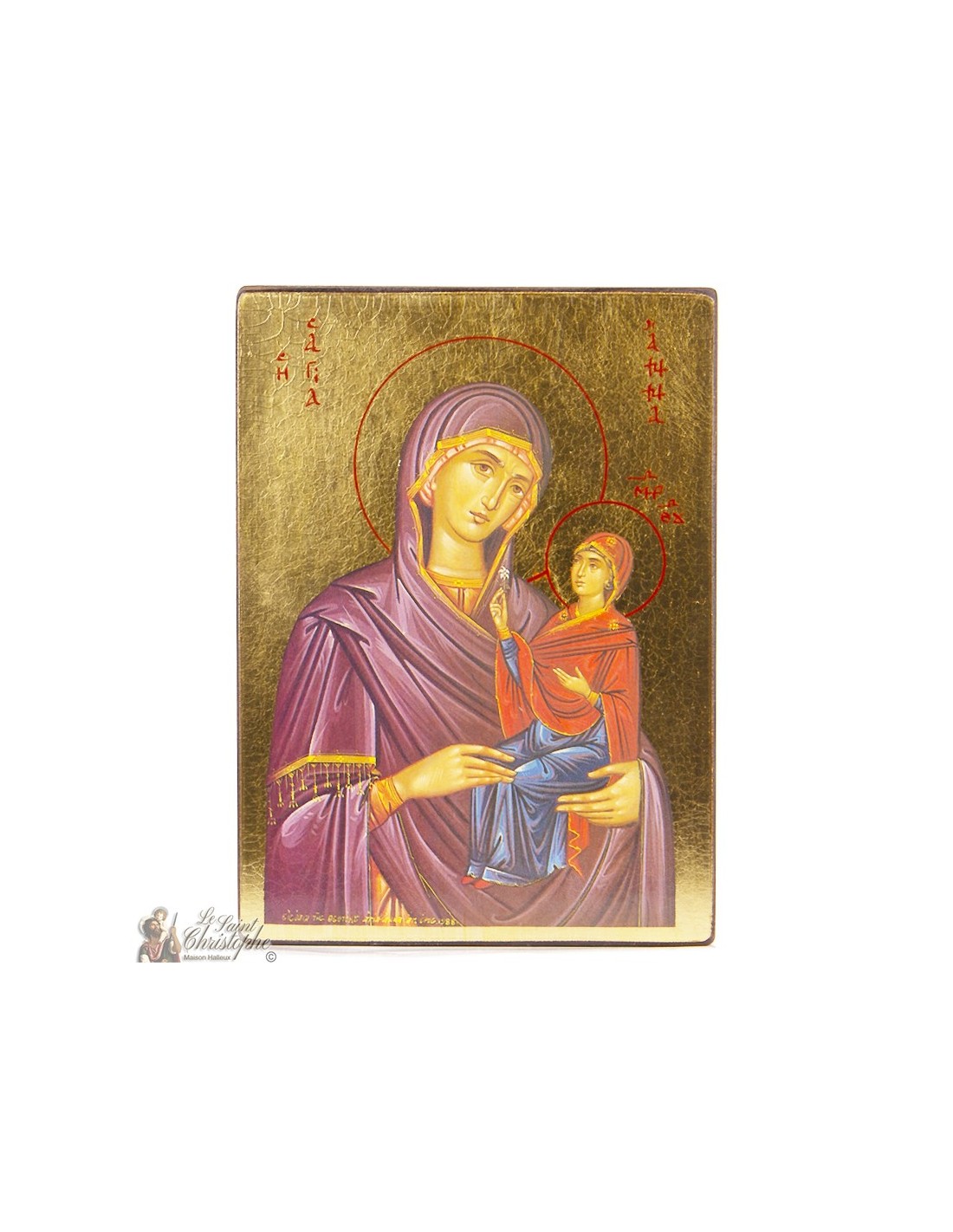 Cette icône orthodoxe dépeint Sainte Anne, mère de la Vierge Marie, tenant dans ses bras sa fille encore enfant, déjà bénie et sacrée. Réalisée à la main sur bois doré à la feuille d’or, elle mesure 10,5 x 14,5 cm et pèse environ 150 g. Cette représentation rare et symbolique exprime la foi transmise de génération en génération. Un bel hommage aux racines de la spiritualité mariale, propice à la prière familiale.