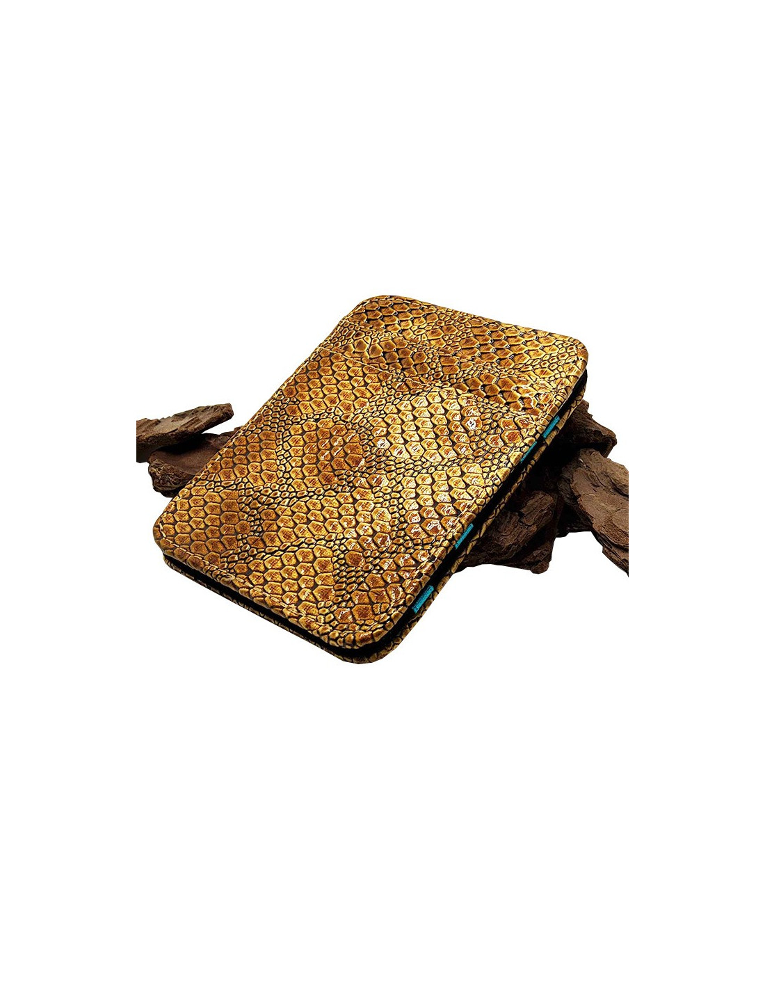 Porte-billet et porte-carte magique en similicuir doré effet serpent