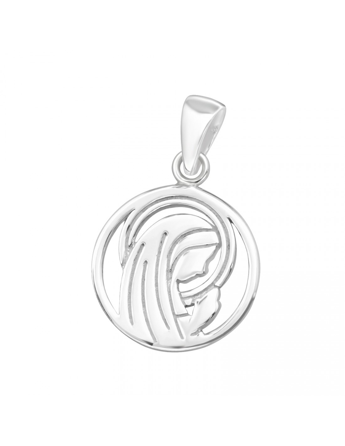 Médaille Vierge Marie moderne et stylisé en argent 925 - diamètre 2 cm