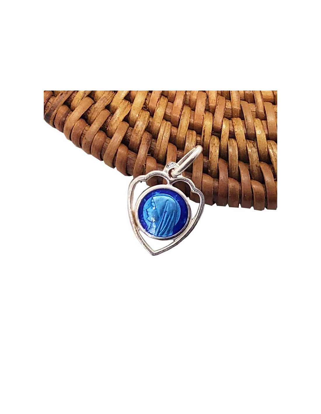 Façonnée avec soin et délicatesse, chaque détail de cette médaille évoque la tendresse et la bienveillance de la Vierge Marie. Les reliefs délicats, subtilement rehaussés d'un émail bleu, rappellent la présence aimante de la Sainte Vierge dans la vie quotidienne. Avec ses dimensions modestes de 11 x 13 mm, cette médaille se veut discrète.
