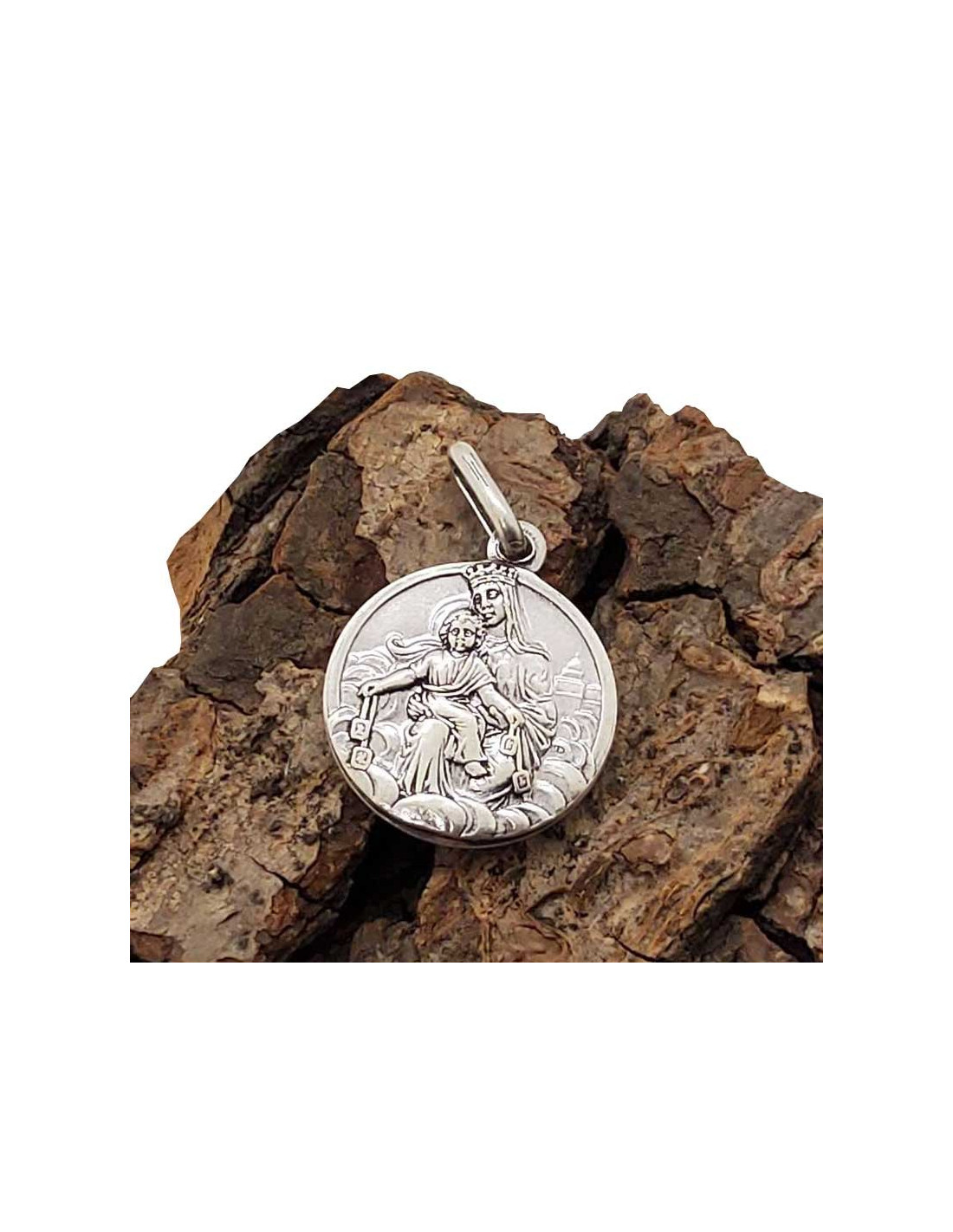 Médaille religieuse du Sacré Coeur du Jésus et Notre Dame du Mont Carmel au Scapulaire. Ce pendentif fantaisie en métal argenté est garanti sans nickel pour éviter les risques d'allergie. La médaille est ronde, avec le Sacré Coeur de Jésus sur une face et Notre Dame du Mont Carmel sur l'autre face.