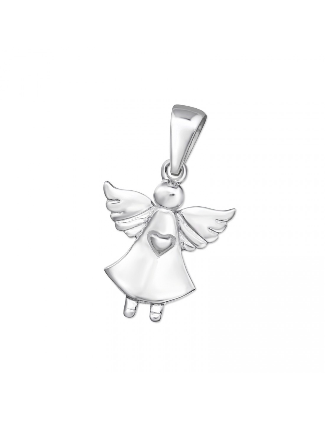 Ce pendentif représente un ange aux ailes ouvertes. Au style simple, il est gravé d'un coeur en son centre. Un symbole de protection mais également d'amour dans un petit bijou lumineux et brillant !