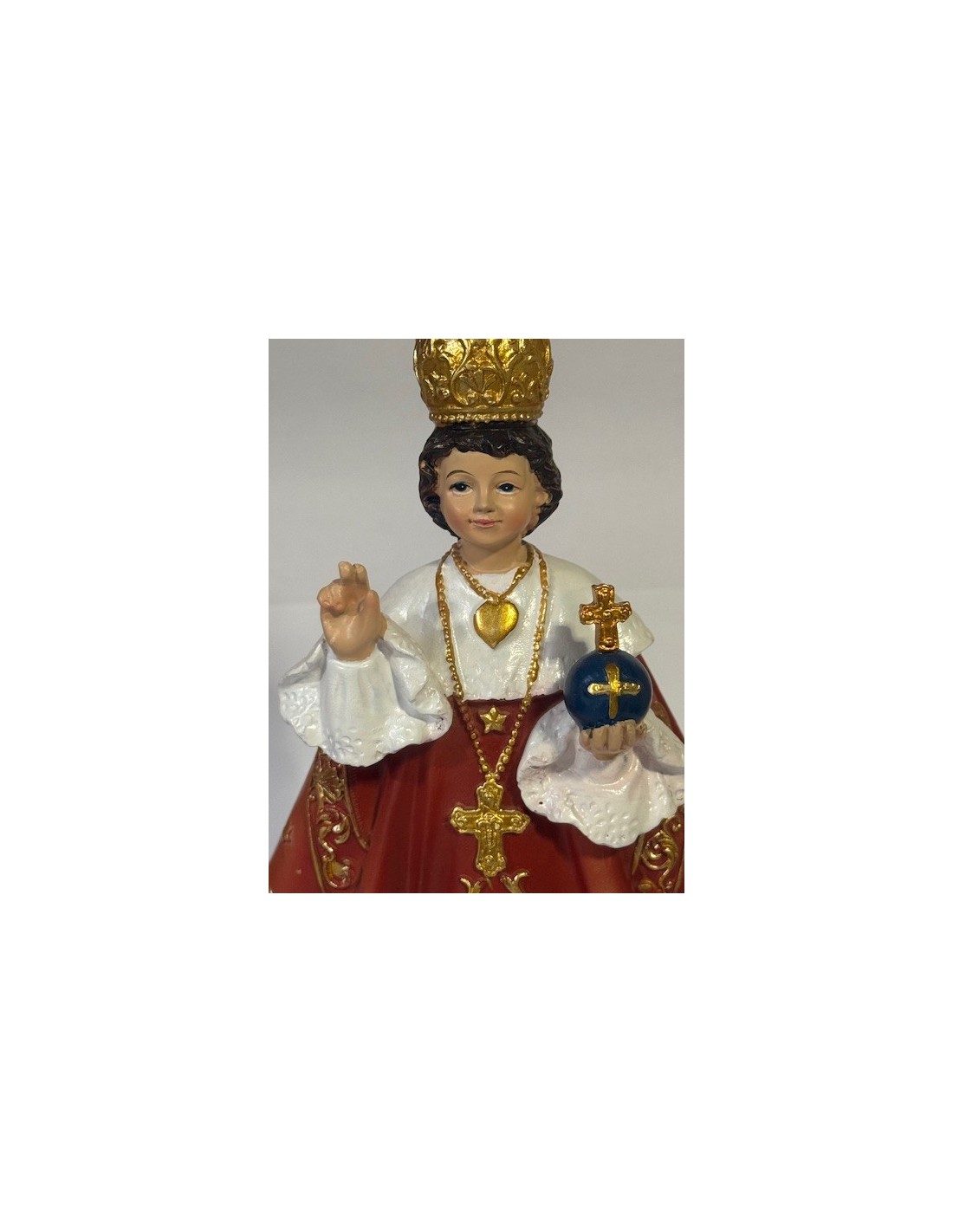 Découvrez cette somptueuse statue du Petit Jésus de Prague, une pièce de 22 cm réalisée entièrement en résine et peinte à la main avec un soin remarquable.