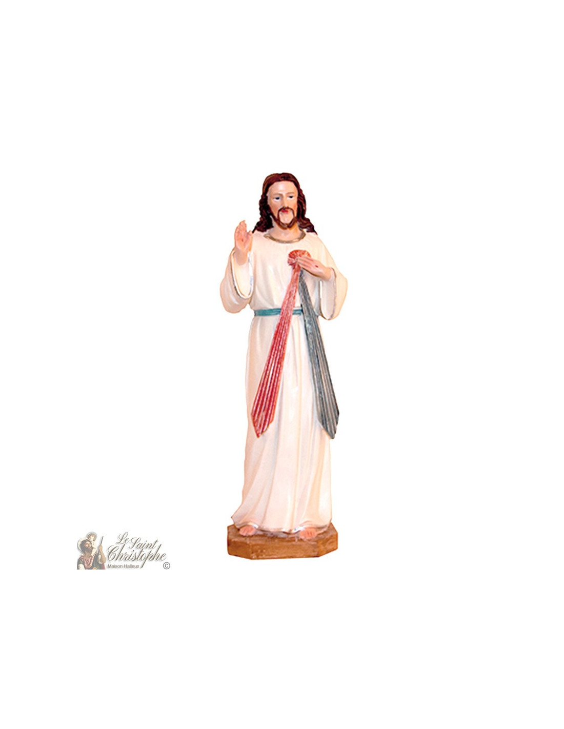 Statue de Jésus Christ Miséricordieux en résine réalisée entièrement à la main.