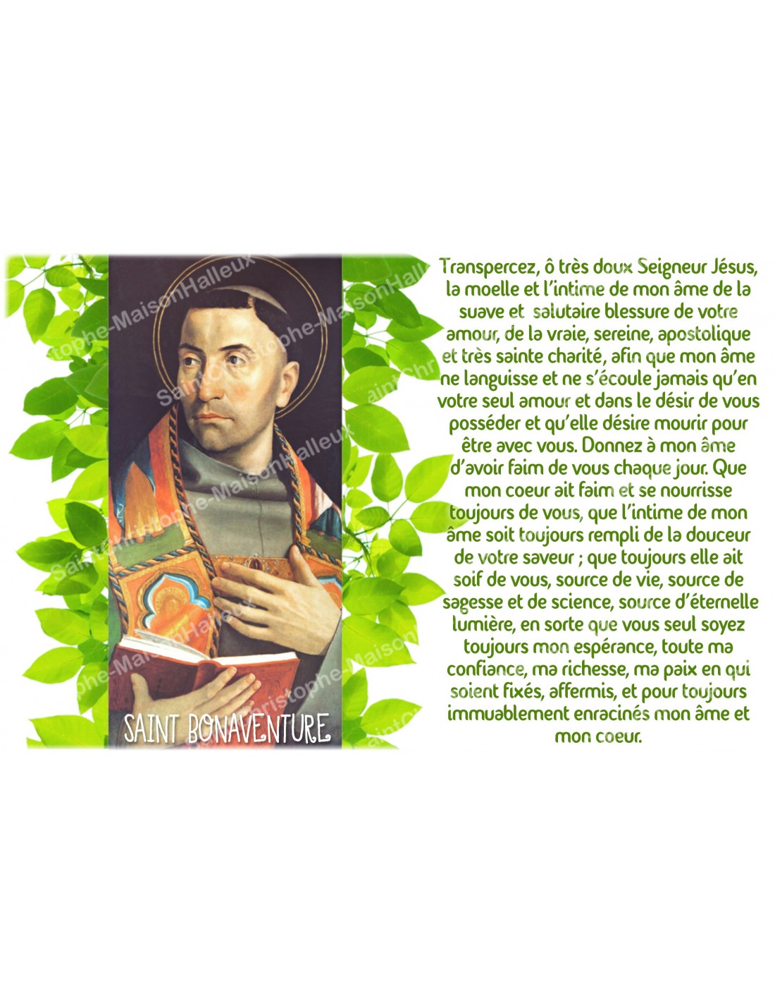 L'autocollant est à l'image de Saint Bonaventure, un portrait dans un style de tableau de maître, avec une prière qui lui est dédiée.