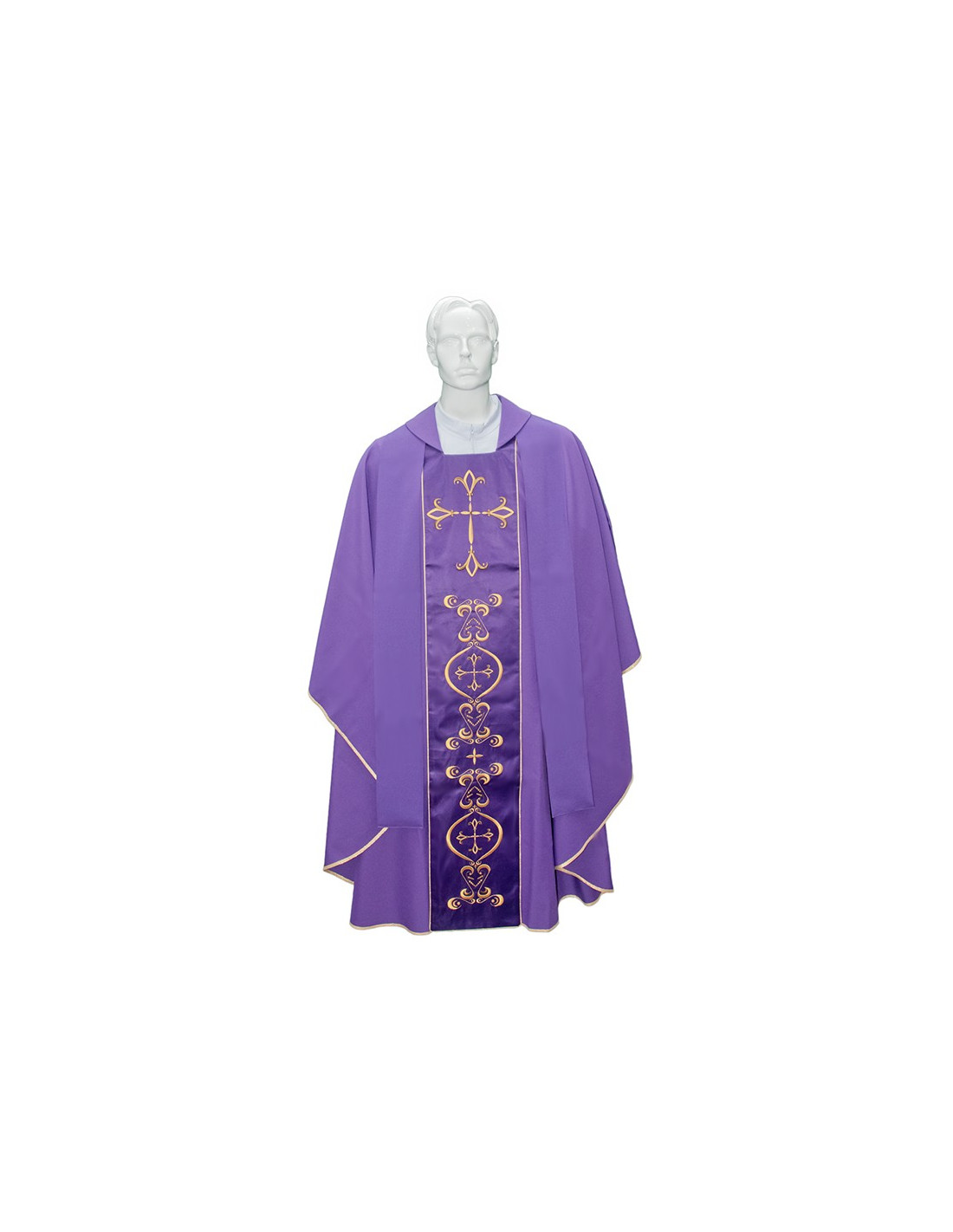 Si vous recherchez une chasuble de couleur violette, cette pièce est celle qui vous faut. Constituée de polyester, elle contient une étole brodée sur la chasuble. Elle est également lavable en machine.
