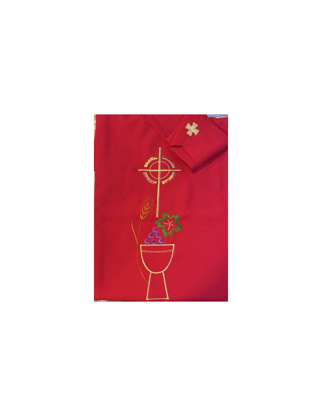 • Broderie : Calice, blé, raisins et croix dorée (deux faces)