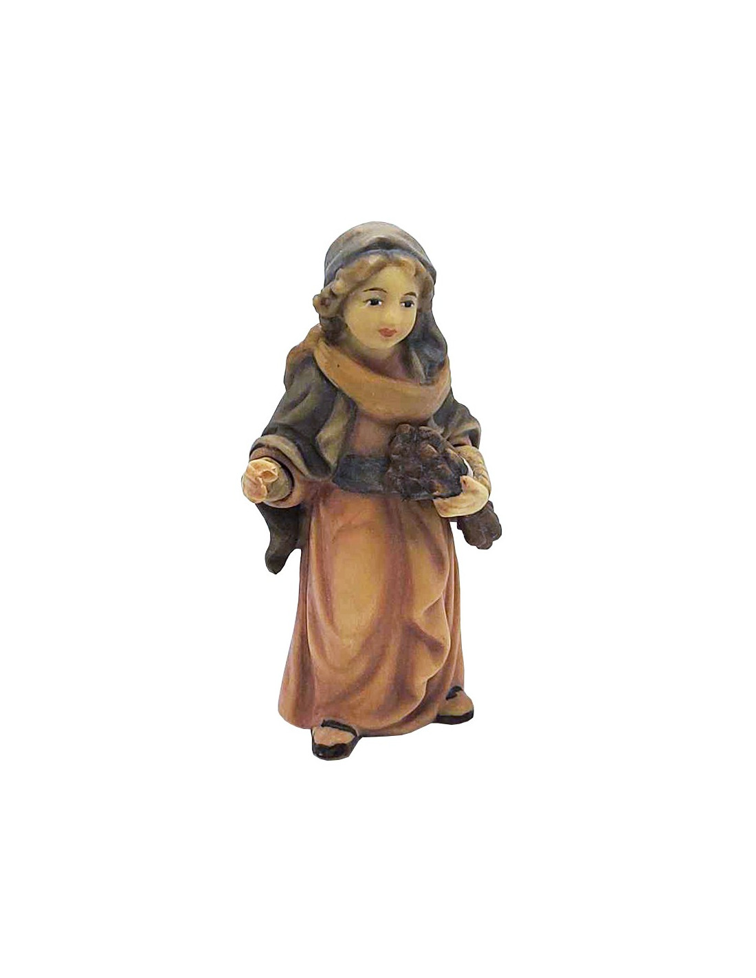 Giovane pastorella con fascio di legna - statuina in legno 8 cm