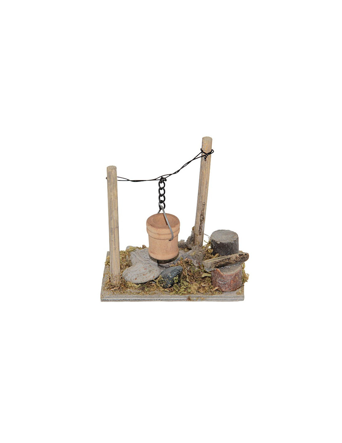 Portate un tocco di autenticità al vostro presepe con questo fuoco a legna in miniatura con secchio sospeso.