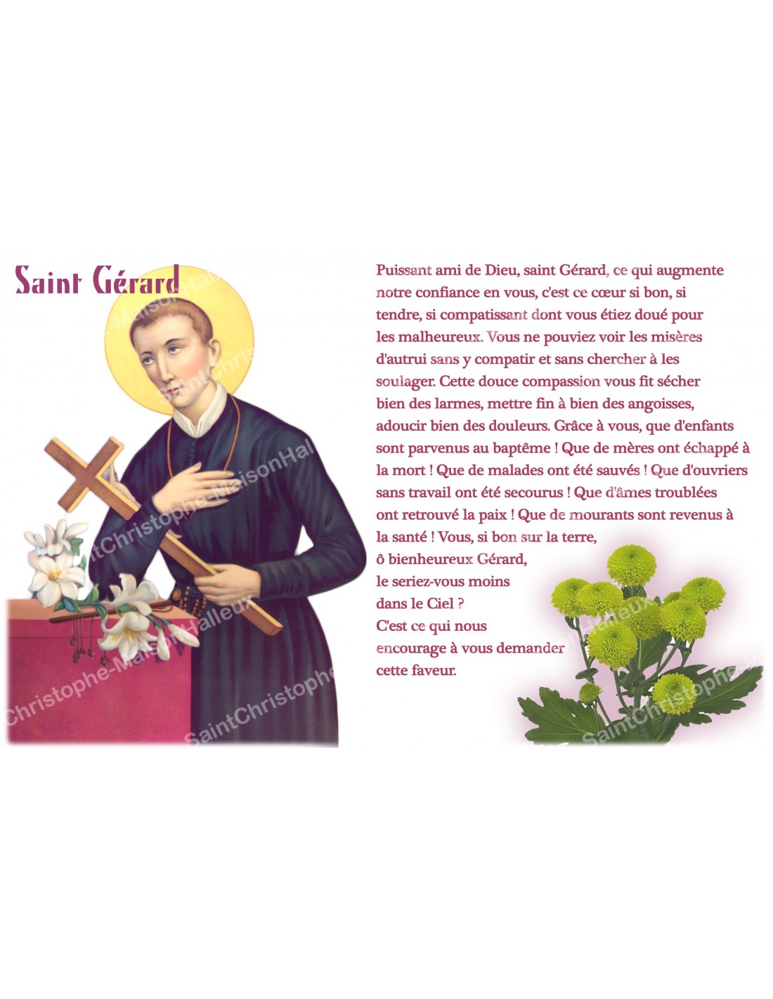 L'adesivo raffigura San Gerardo con una preghiera a lui dedicata, in cui gli si chiede una grazia o la sua intercessione.