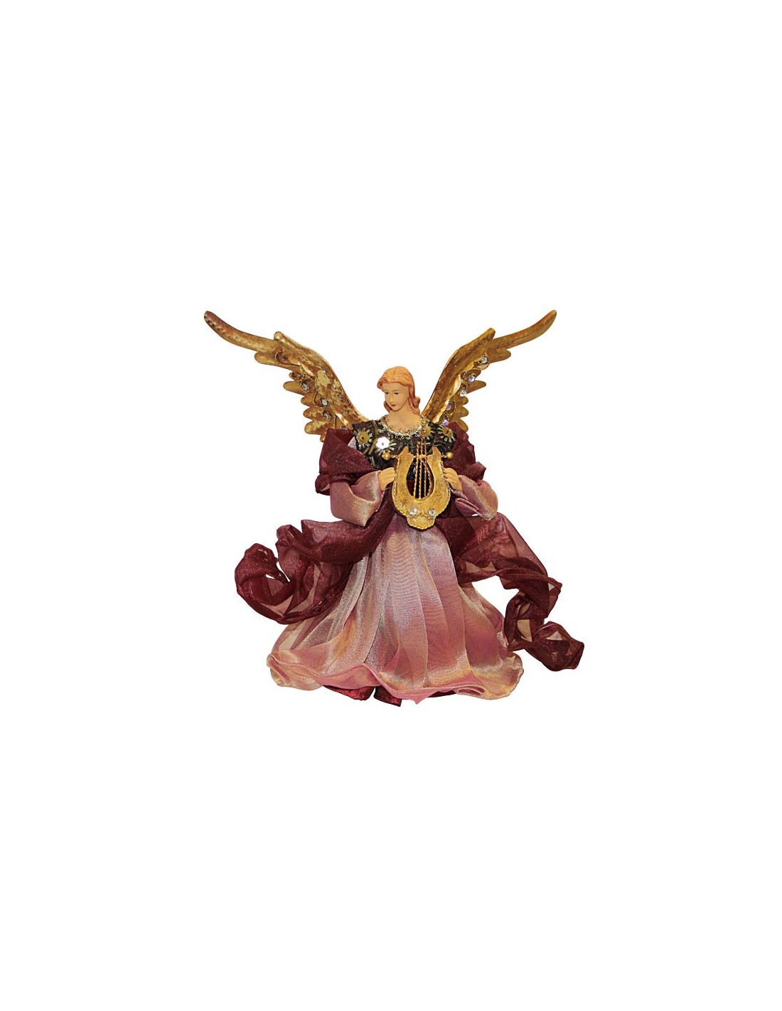 La statua misura 20 cm di altezza ed è realizzata in modo meticoloso. L'abito dell'angelo, realizzato in organza rossa, è molto delicato, con le sue ampie balze e i riflessi moiré che catturano la luce.