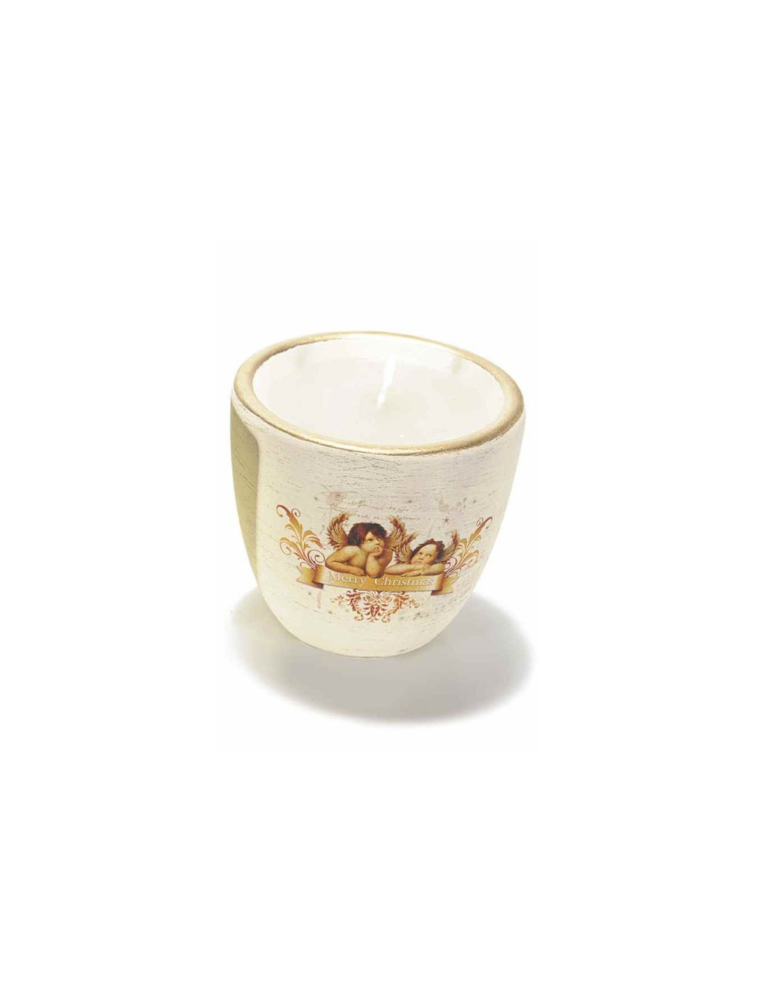 Candela da vaso in ceramica con piccoli angeli