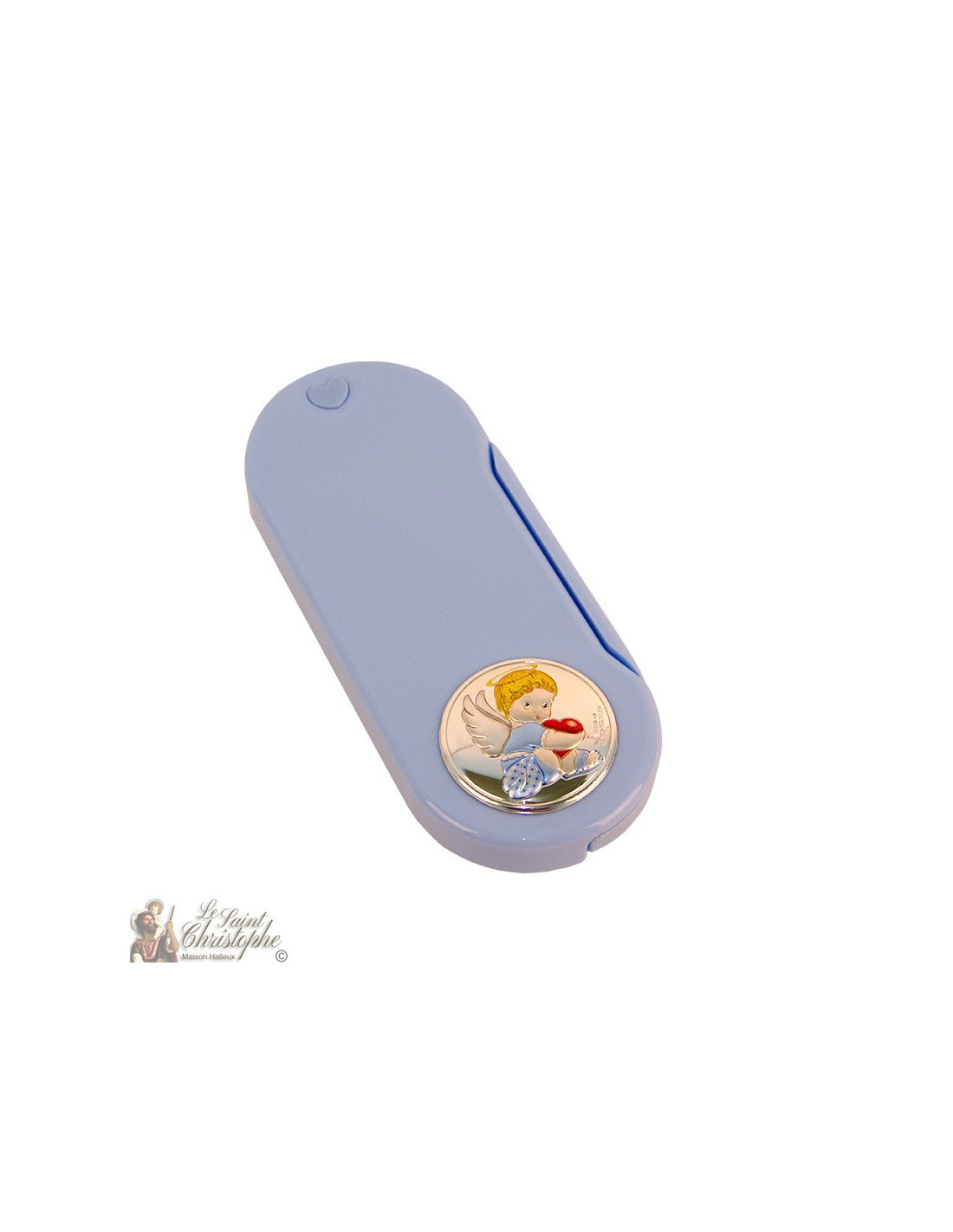 La scatola è decorata con una medaglia d'argento finemente lavorata, raffigurante un angioletto che tiene tra le braccia un cuore, con una parte opaca e una lucida per aggiungere rilievi e parti colorate per valorizzarlo.