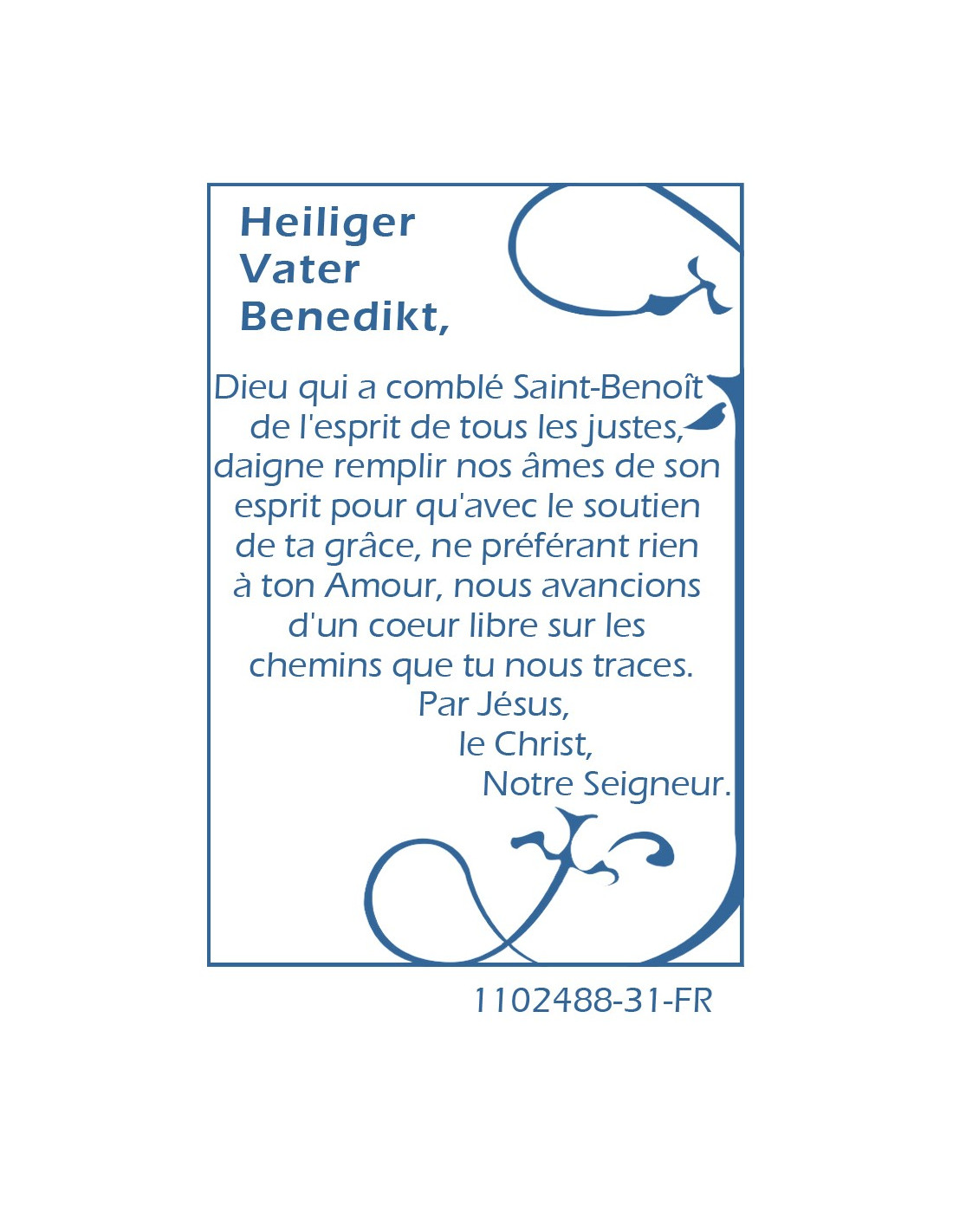 Questa medaglia-scheda onora San Benedetto. La carta di plastica può essere portata in tasca o nel portafoglio ed è stampata con un'icona di San Benedetto e una preghiera in suo nome. È decorato con una medaglia di San Benedetto, che puoi ritagliare per indossarla come ciondolo o lasciarla con la carta come ricordo. La preghiera a San Benedetto è per la protezione e l'amore.