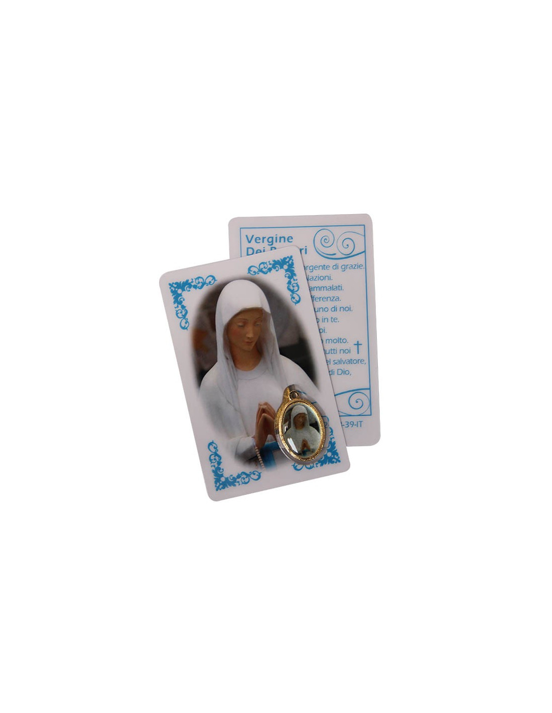 Questa medaglia-scheda onora Nostra Signora dei Poveri. La carta è stampata con un'immagine della Vergine Maria di Banneux Notre-Dame e una preghiera in suo nome, e può essere portata in tasca o nel portafoglio. È decorato con una medaglia della Vergine dei Poveri, che puoi ritagliare per indossarla come ciondolo o lasciarla con la carta come ricordo.