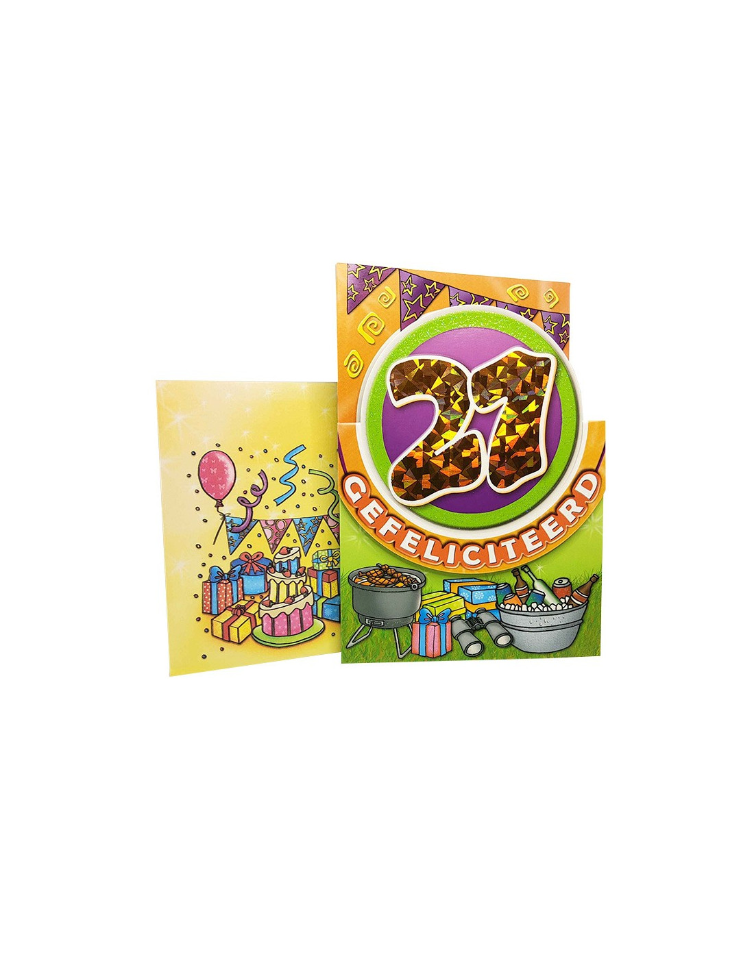Entrare nel mondo del lavoro è un traguardo importante per un giovane adulto. Quindi, per i 21 anni della persona che ami, inviale questo biglietto di auguri! Festeggia questo evento con uno stile retrò grazie a questo biglietto di auguri decorato con glitter e un effetto brillante. Il taglio del biglietto è originale e mette in risalto il numero di anni festeggiati. Accompagnata da un piccolo testo premuroso all'interno, c'è anche spazio per qualche parola più personale. Il biglietto è fornito con una busta abbinata. Il testo è solo in olandese.