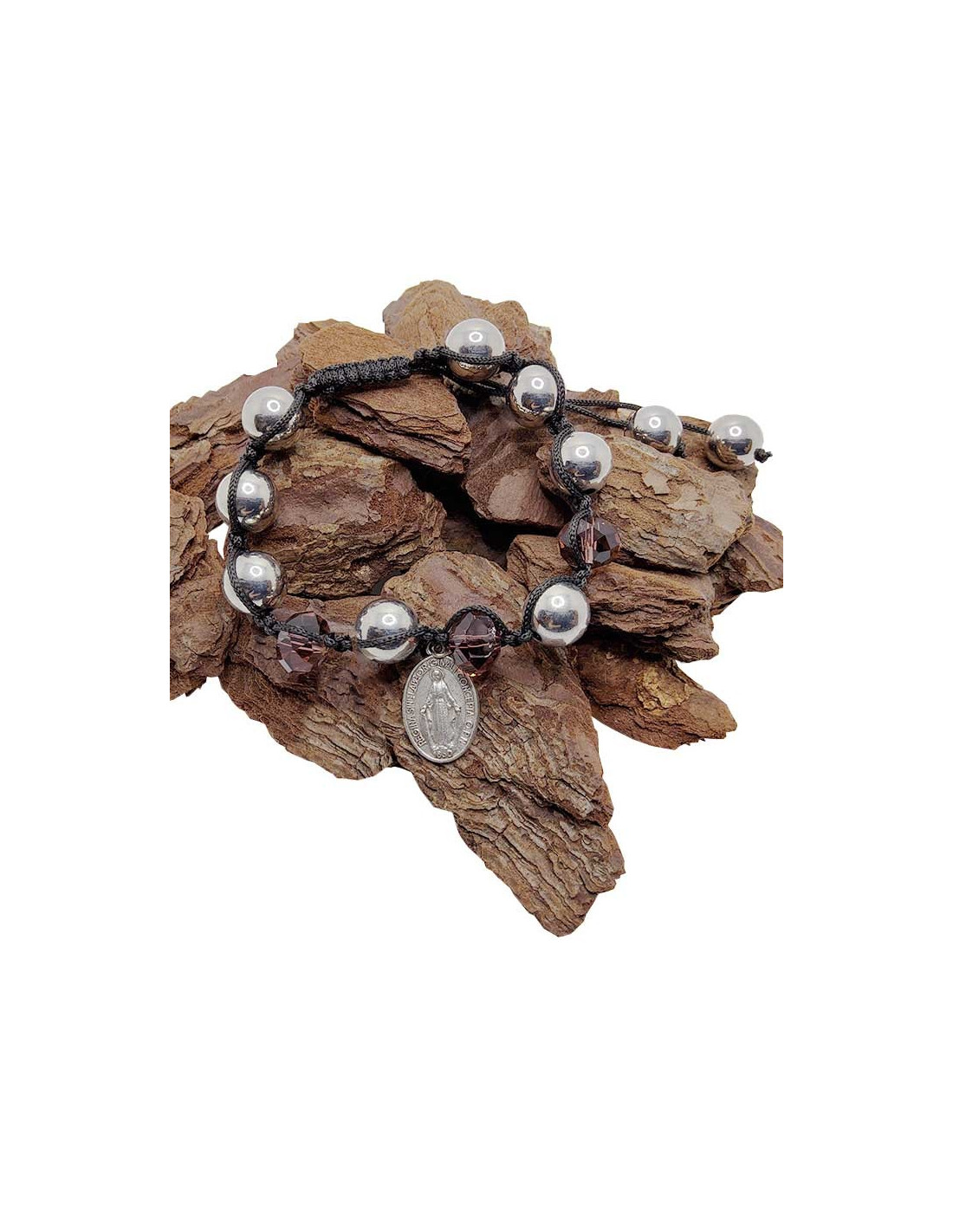 Questo bracciale Shamballa fonde estetica e spiritualità. Montato su un cordino nero regolabile, combina perline grigie lucide con effetto metallico e perline sfaccettate color malva. È decorato con una medaglia decorativa in metallo raffigurante la Vergine Miracolosa. Questa medaglia è simbolo di protezione divina. Si indossa per chiedere grazie o sostegno nei momenti difficili. Un bracciale ispirato e stimolante, moderno e ricco di significato. Questo bracciale unisex è regolabile grazie ai nodi in macramè, rendendolo adatto sia a polsi grandi che piccoli! Larghezza del bracciale: da 16,5 a 26,5 cm