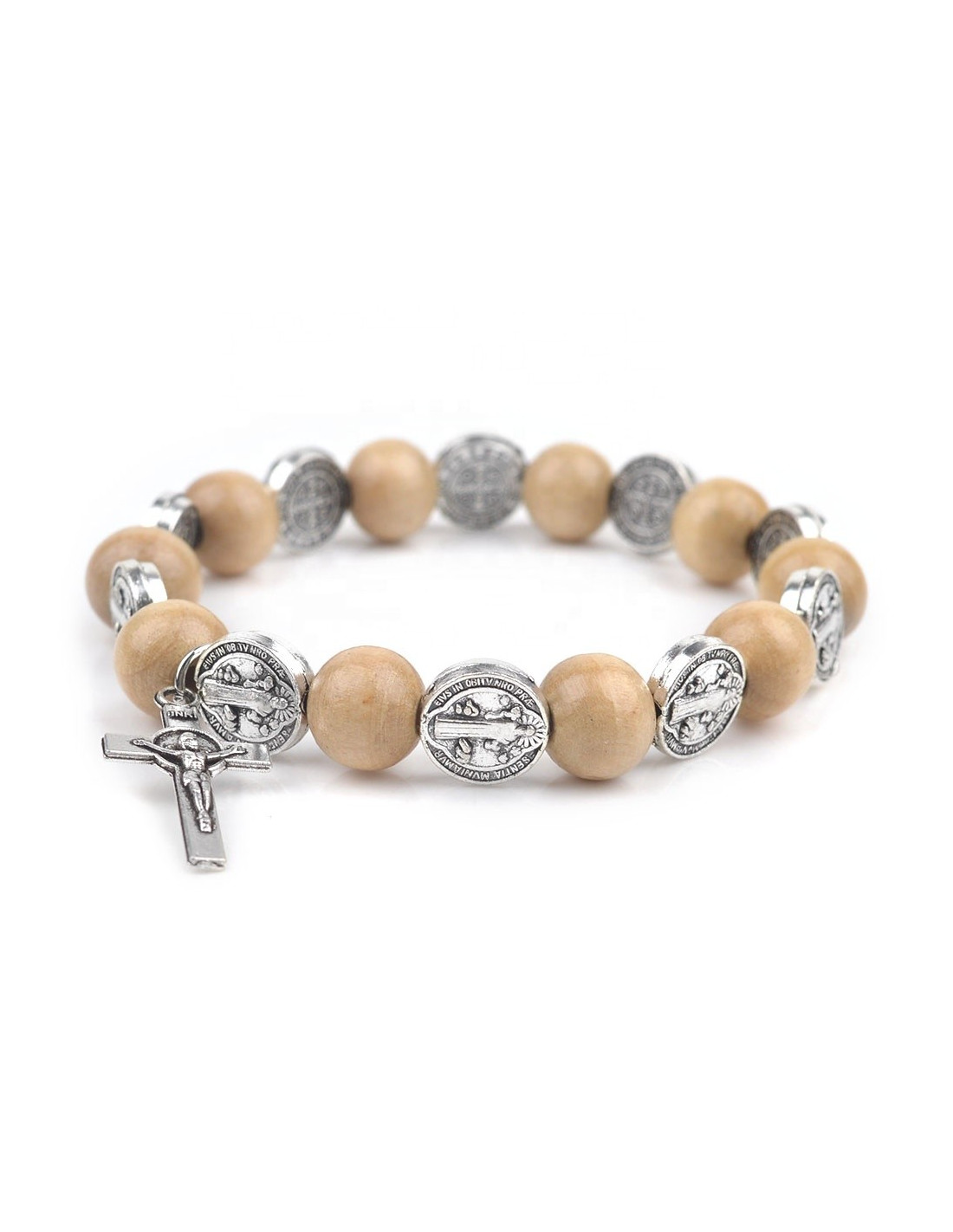 Bracciale San Benedetto – Medaglie e perle in legno naturale