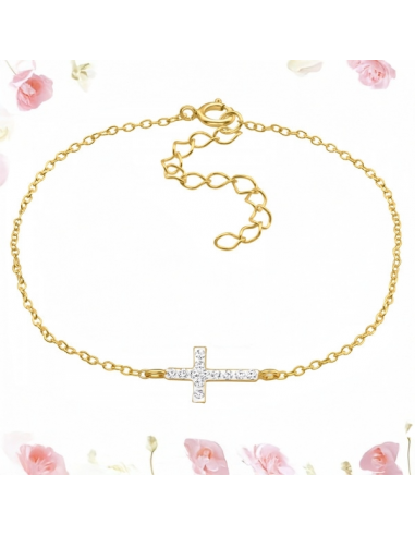 Bracciale in Argento Placcato Oro con Croce e Cristalli