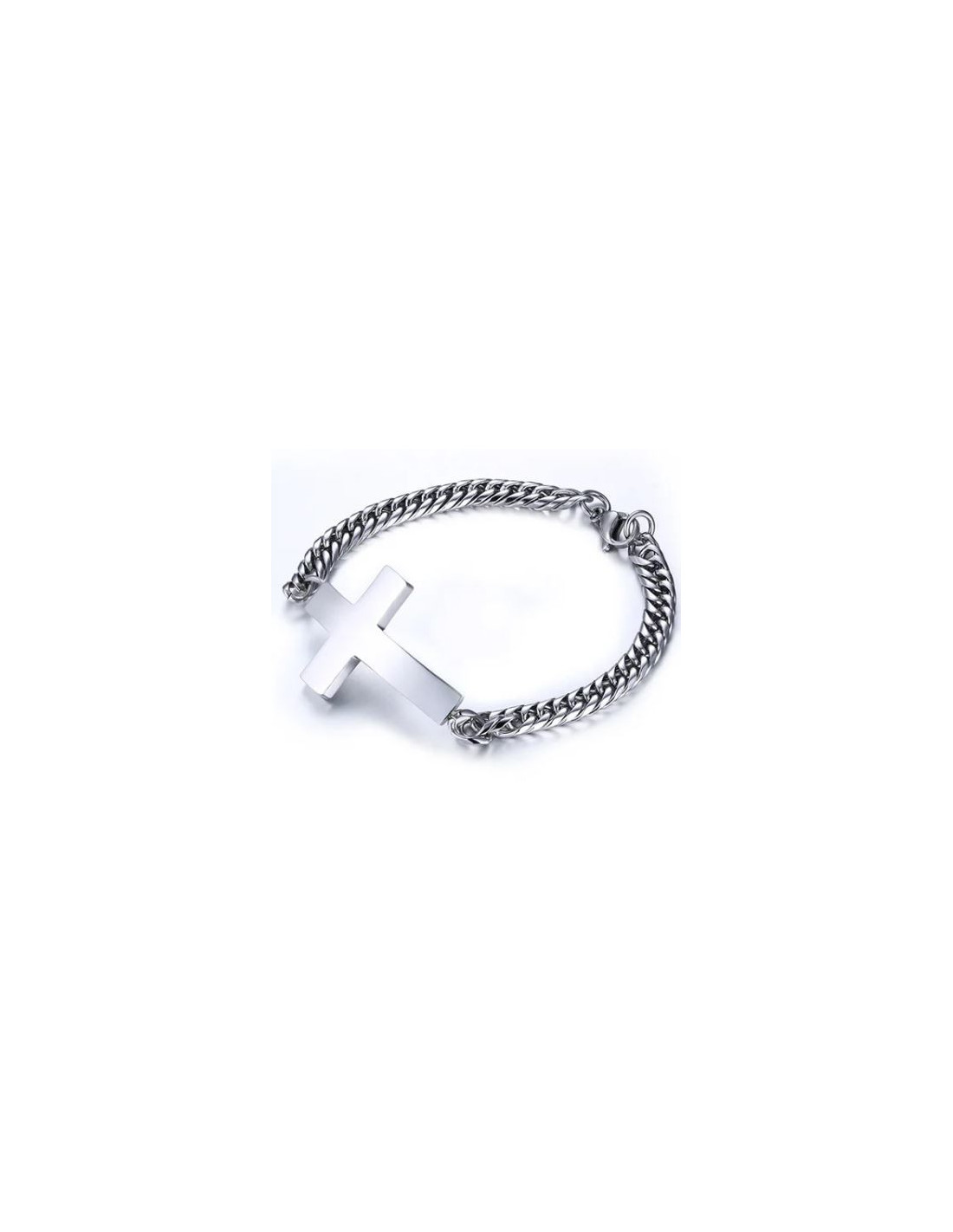 Massiccio bracciale a maglia barbazzale, con croce cristiana. Le maglie spesse e robuste di questo modello sono particolarmente apprezzate dagli uomini che preferiscono questo stile più sicuro.