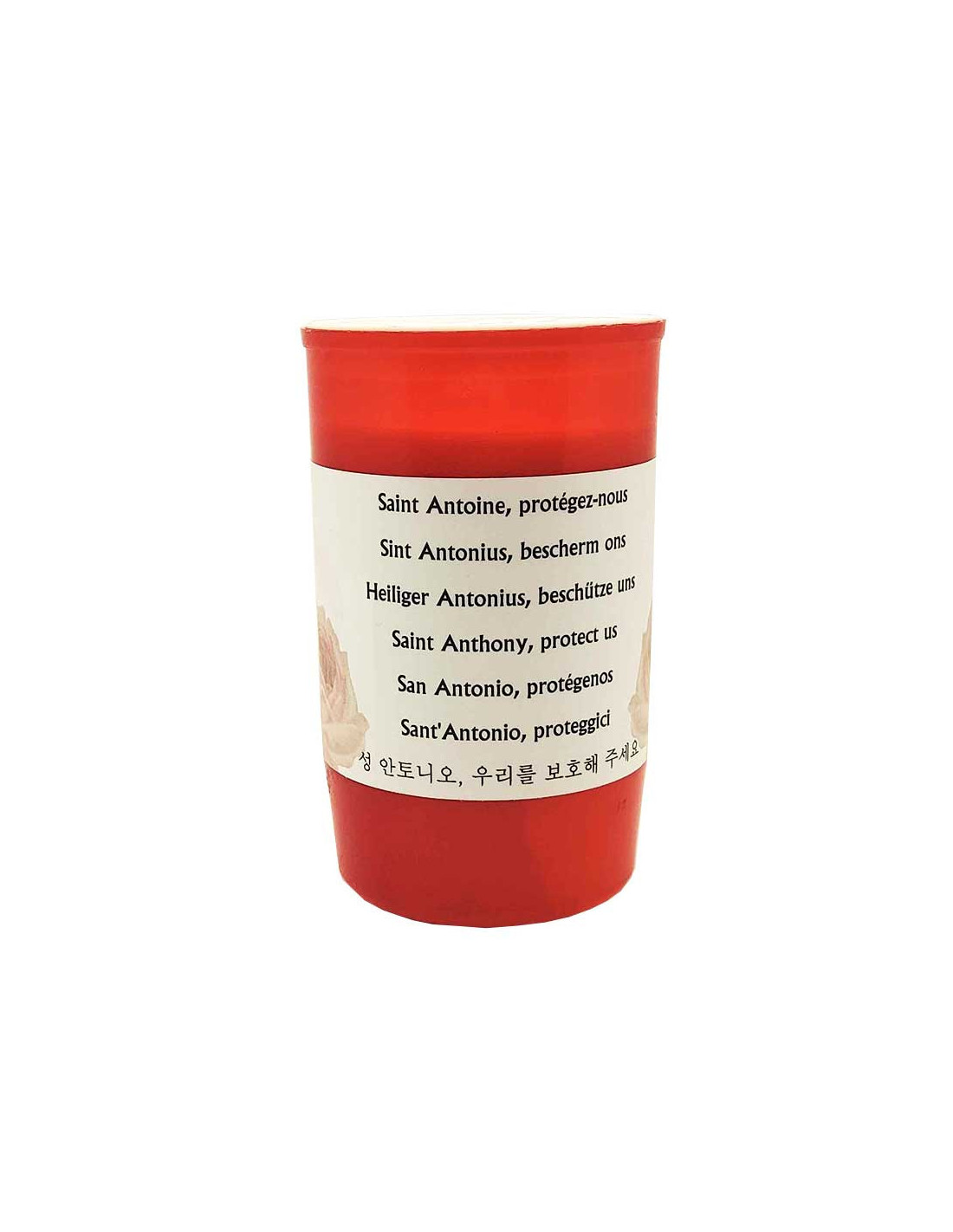 Questa candela votiva a olio, dedicata a Sant’Antonio, simboleggia aiuto, fede e speranza. È conosciuto come il santo degli oggetti smarriti e delle cause urgenti.