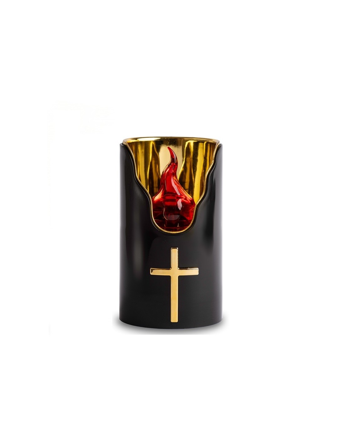Candela funeraria LED nera e dorata con croce