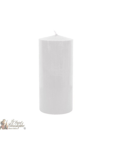 Questa candela è colorata nella massa di un bel bianco, lattiginoso e immacolato. Largo ma di altezza ragionevole, è perfetto per le decorazioni delle feste come il Natale, un matrimonio o San Valentino.