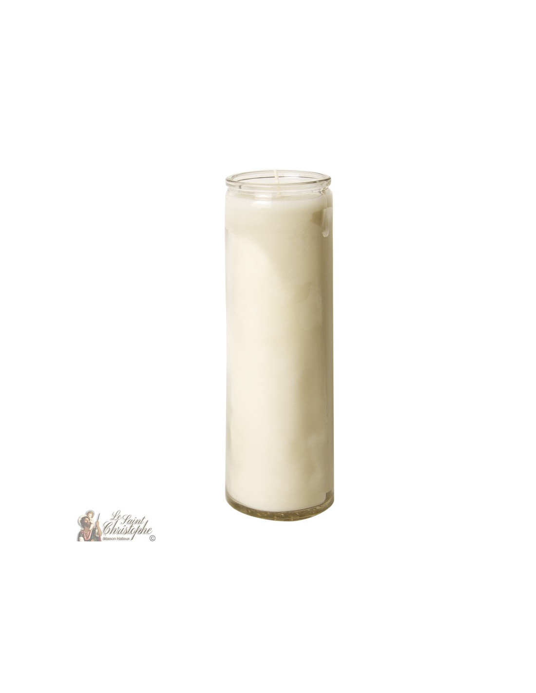 Candela in un solido contenitore di vetro, che brucia per un totale di 168 ore, pari a 7 giorni. La paraffina scorre all'interno del contenitore, dando un effetto fotoforo mentre brucia, con la fiamma che brilla attraverso il sottile strato di cera. La candela può essere utilizzata per il semplice piacere della decorazione o per scopi più spirituali come la preghiera, la meditazione o l'esoterismo.