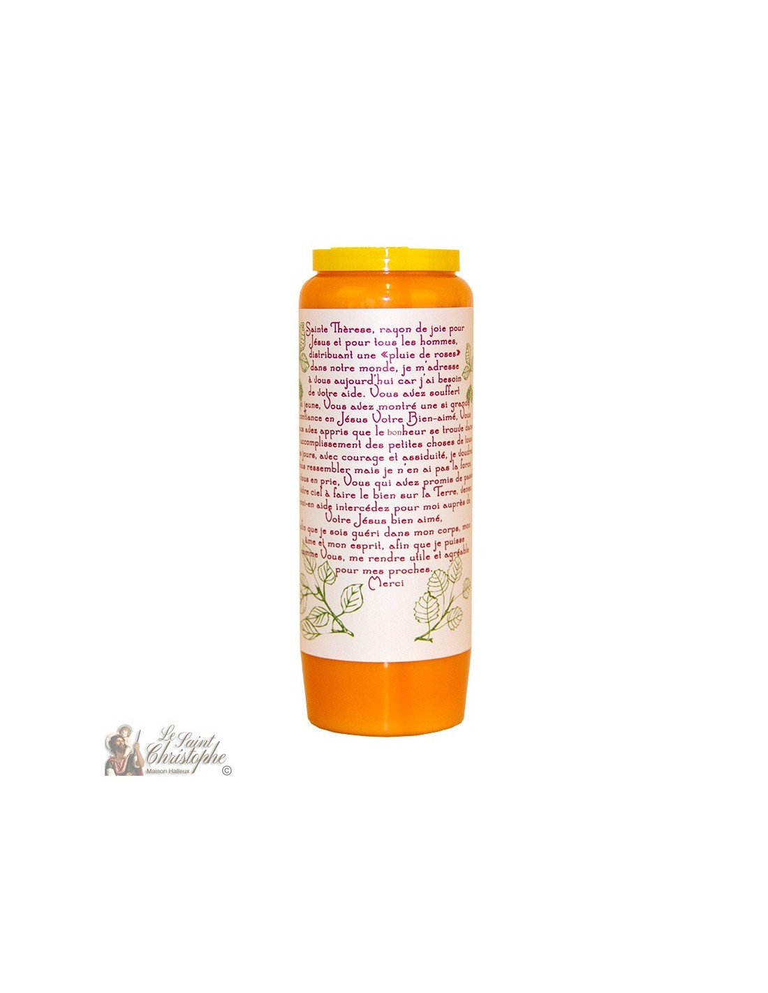 Cero di novena vegetale con un'immagine di santa Teresa di Lisieux e la preghiera in fondo nella lingua di vostra scelta.