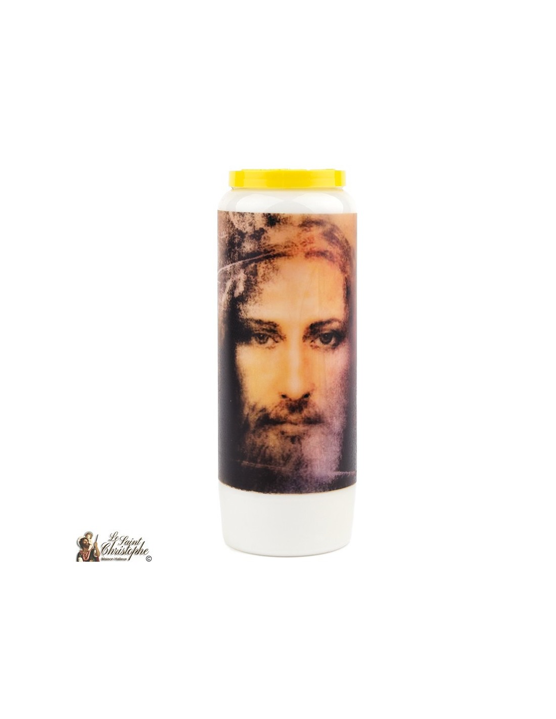 Cero della novena con immagine del Volto Santo di Gesù Cristo e preghiera sul retro.
