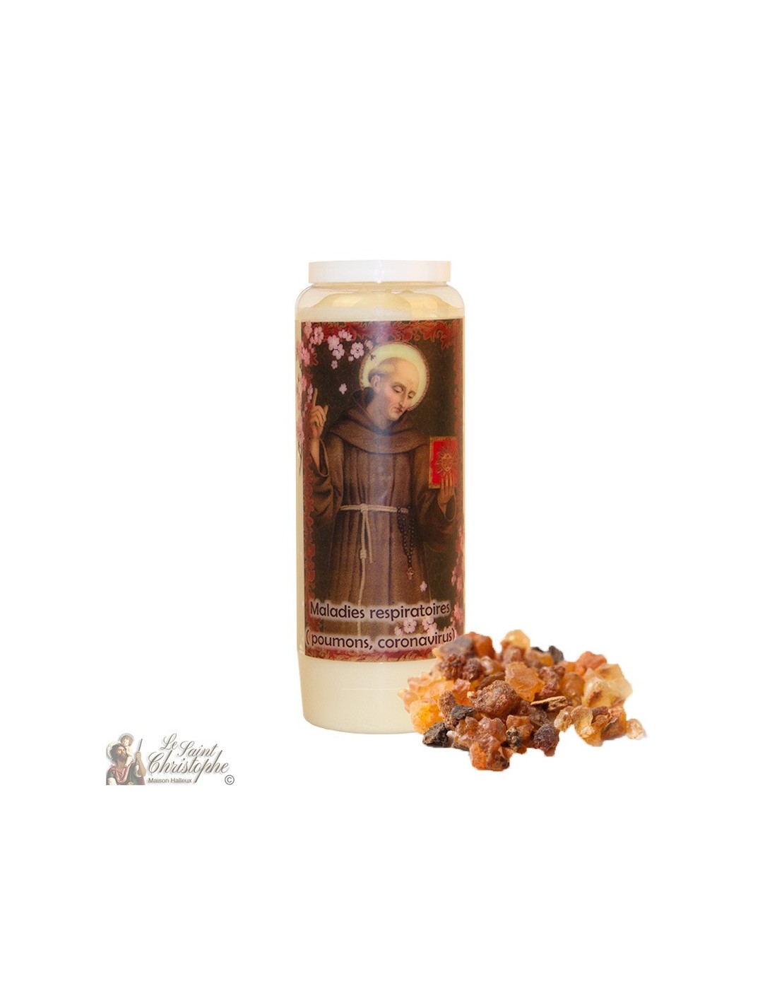 Cero di novena vegetale profumato alla mirra con l'immagine di San Bernardino da Siena e la preghiera a lui dedicata in fondo. Questo santo va pregato durante le malattie respiratorie. Una combinazione perfetta per la purificazione dell'aria.