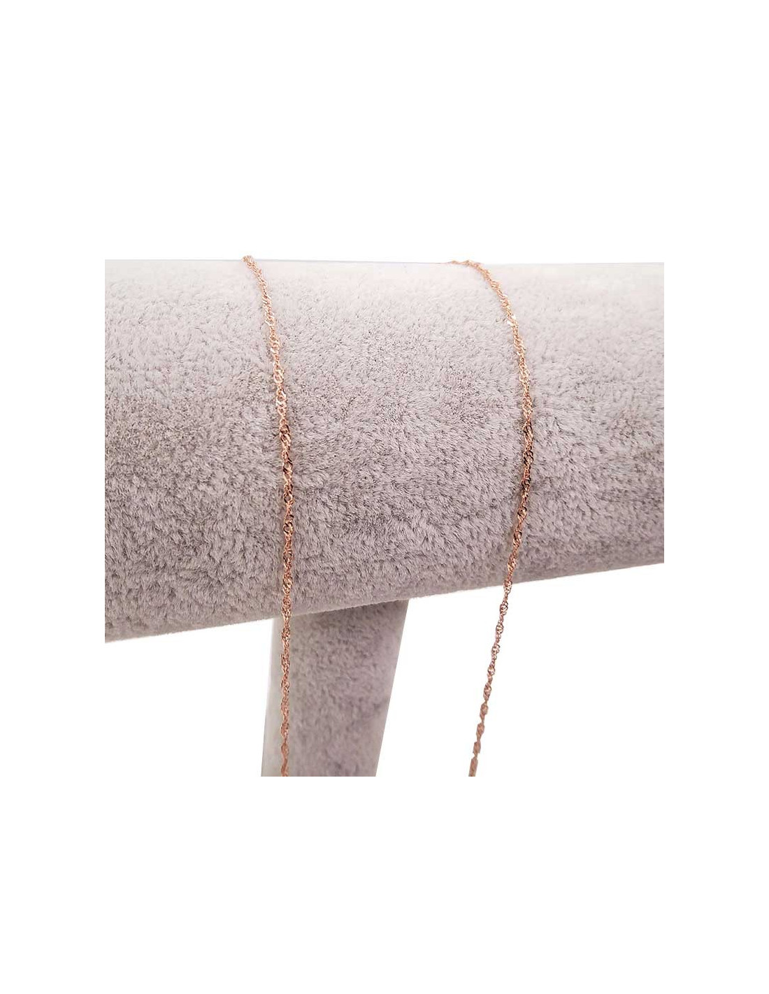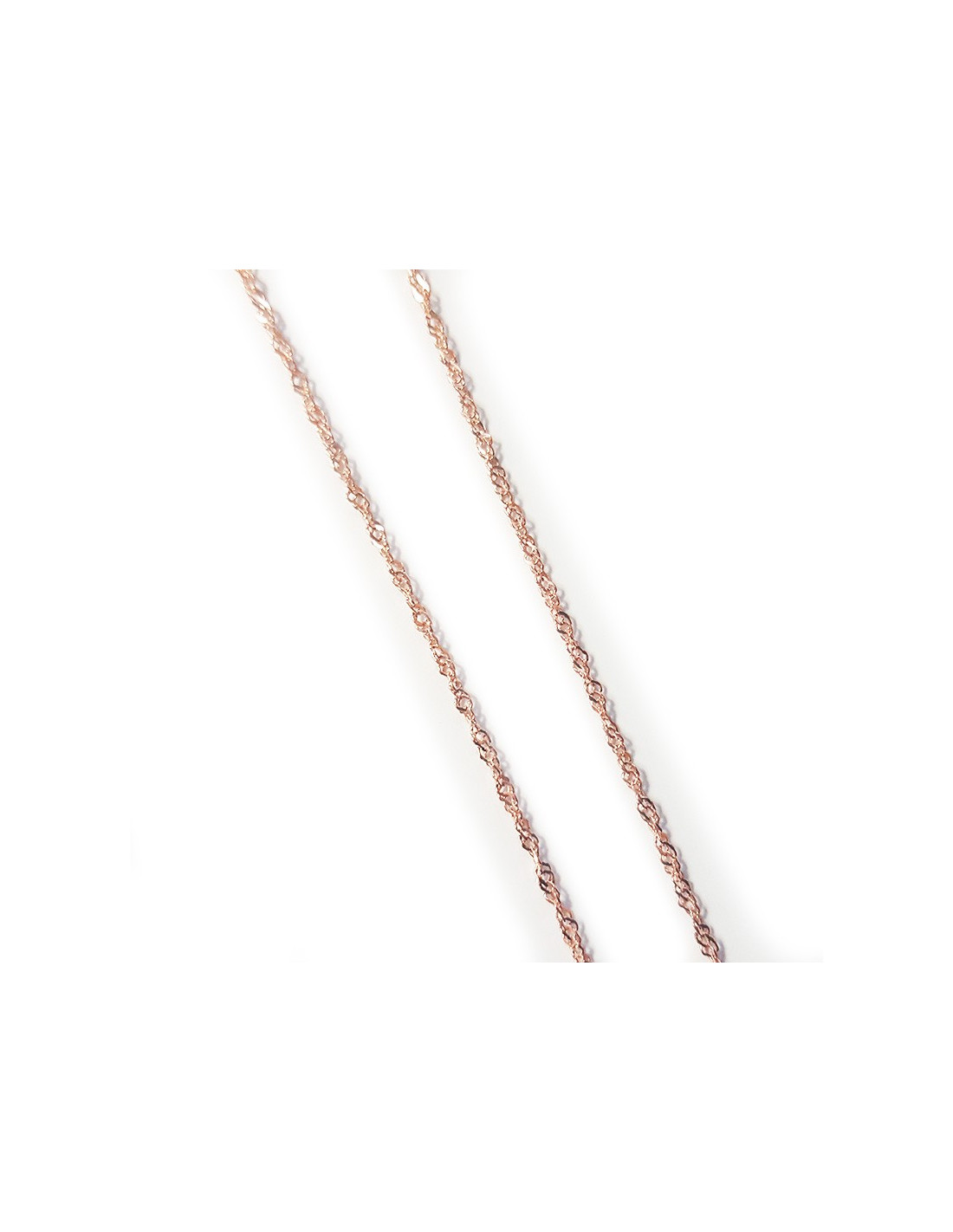 Catena Singapore di 45 cm in argento 925 placcato oro rosa, riconoscibile per le sue maglie delicatamente intrecciate. Molto comoda, questa catena è sofisticata e chic, e può essere indossata da sola o combinata armoniosamente con un ciondolo.