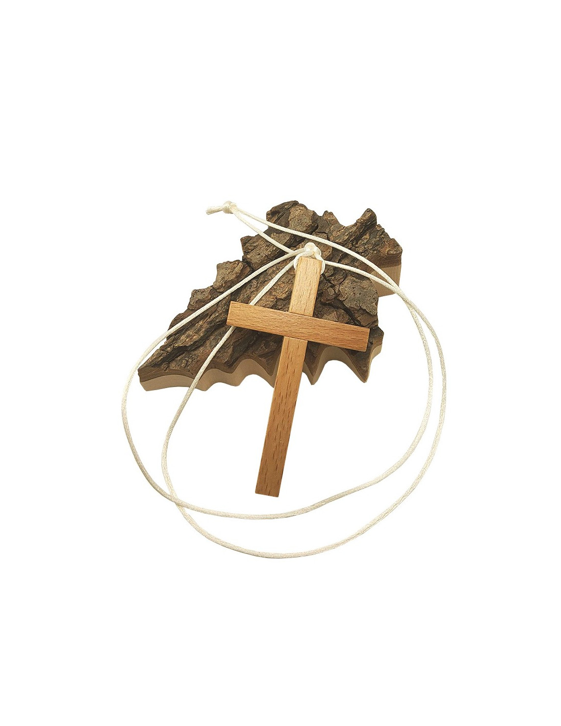 Collana con cordone bianco e croce di legno come pendente. Questo accessorio è essenziale per i giovani comunicatori e lascia loro un ricordo di questo evento indimenticabile nella loro vita spirituale.