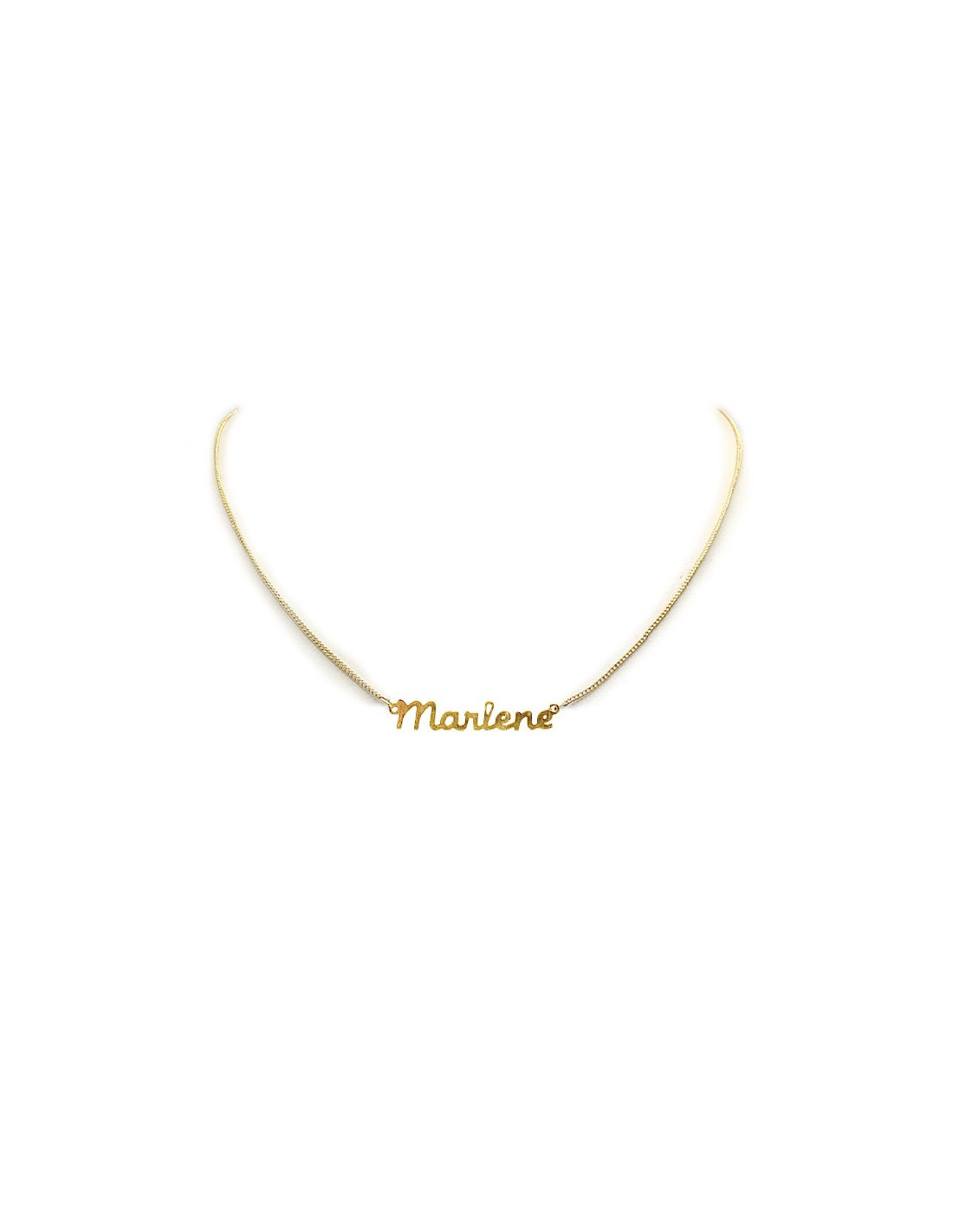 Mostra il tuo nome o quello di una persona cara con questa collana girocollo placcata oro. Il nome "Marlène", in eleganti lettere placcate oro, è incastonato su una catenina in metallo placcato oro. Contrazione di Maria e Maddalena, questo nome unisce tenerezza e mistero, fede e indipendenza. Questo raffinato gioiello è un'idea regalo piena d'affetto, perfetta per un compleanno, un anniversario o un'occasione speciale.