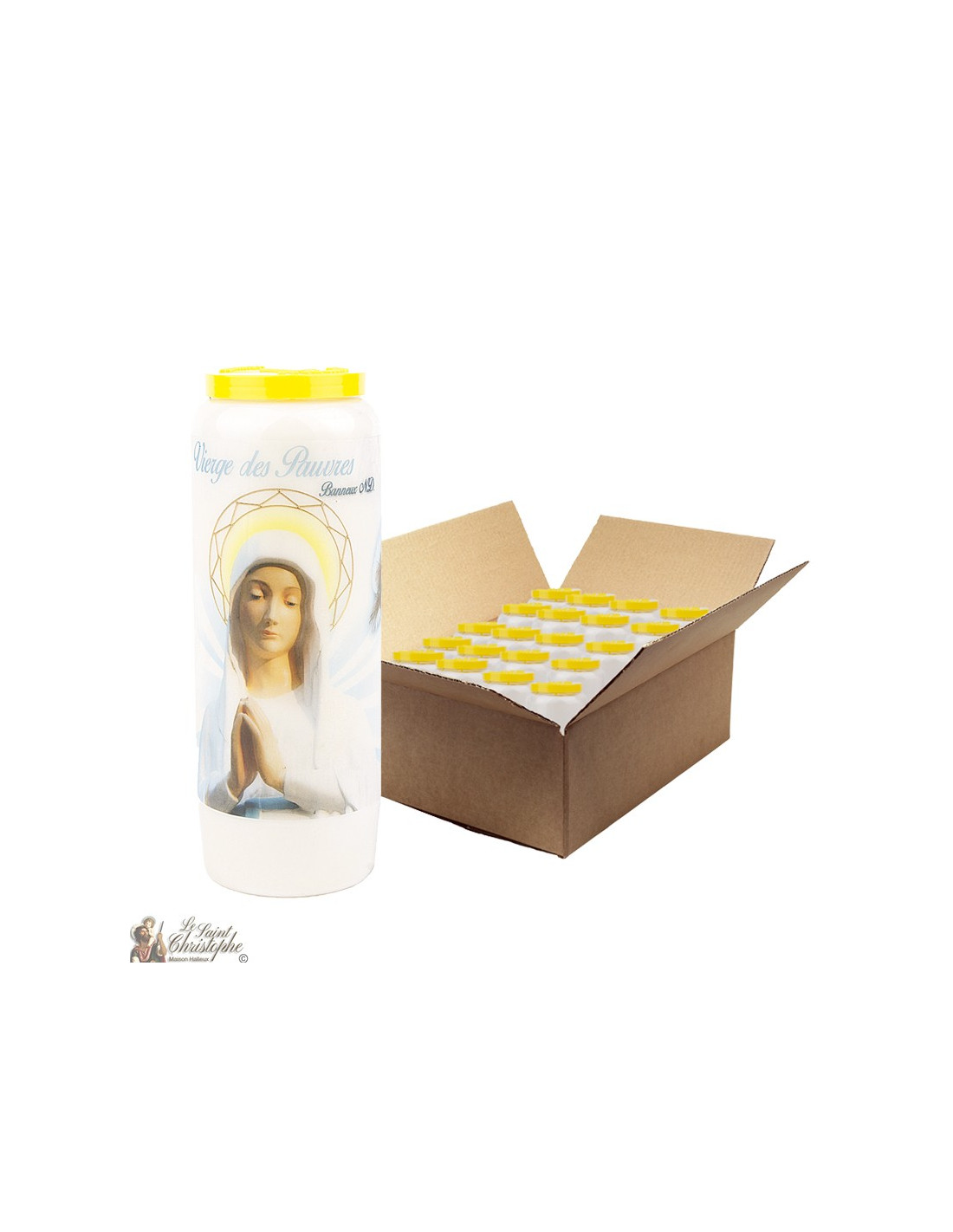 Con immagini e preghiere Candele della Vergine Novena dei poveri di Banneux N.D. - 20 pezzi 5430001266955 65,00 € Candela Novena - Una scatola contiene 20 candele Novenacombustione 9 giorniOlio vegetaleDimensioni: 6 x 18 cm peso: 520 gr per candela Aggiungi al carrello