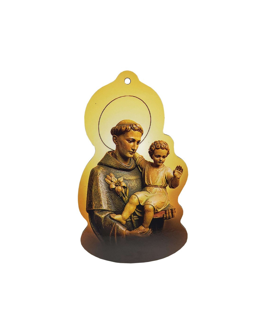 Sant'Antonio da Padova è uno dei santi più venerati nel mondo cattolico. Viene invocato per ritrovare gli oggetti smarriti, ma anche per la sua intercessione nei momenti di dubbio o di ricerca spirituale. La classica rappresentazione con il Bambino Gesù sul braccio ricorda la sua profonda fede e i miracoli a lui attribuiti. Questa targa da parete rende omaggio alla sua tenerezza e saggezza, in un formato discreto e decorativo.