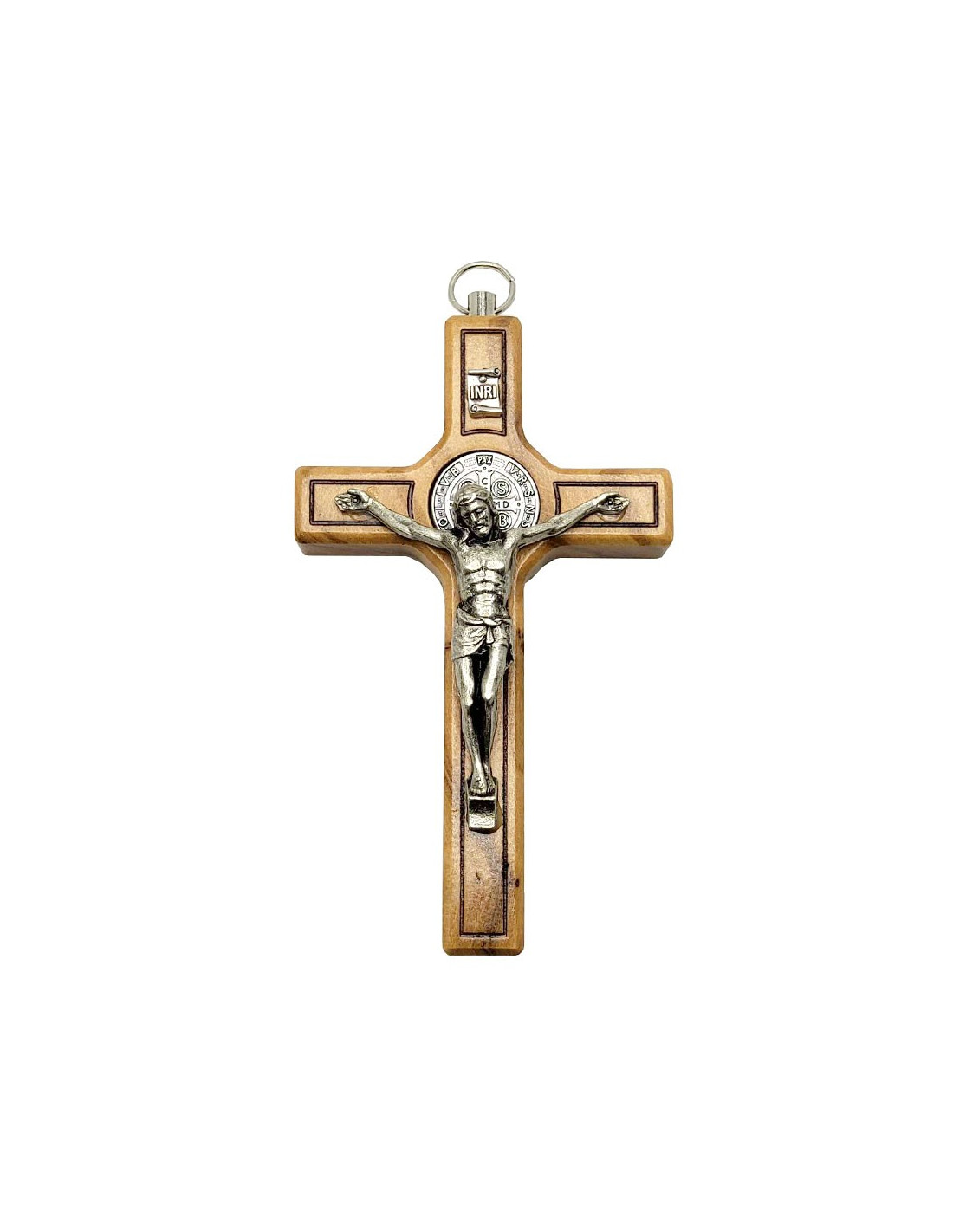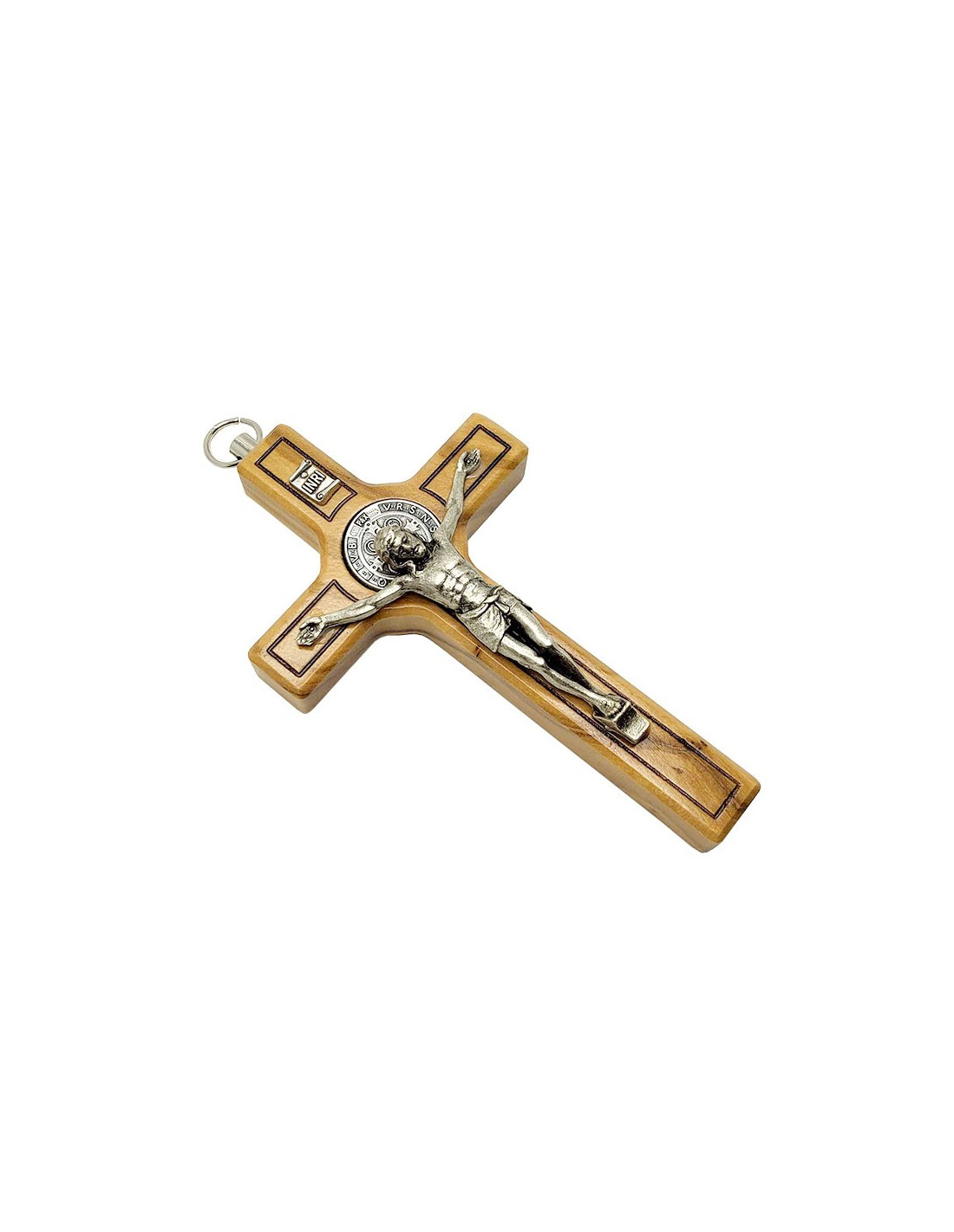 Croce di San Benedetto in legno d'ulivo - 10,5 cm - Da appendere