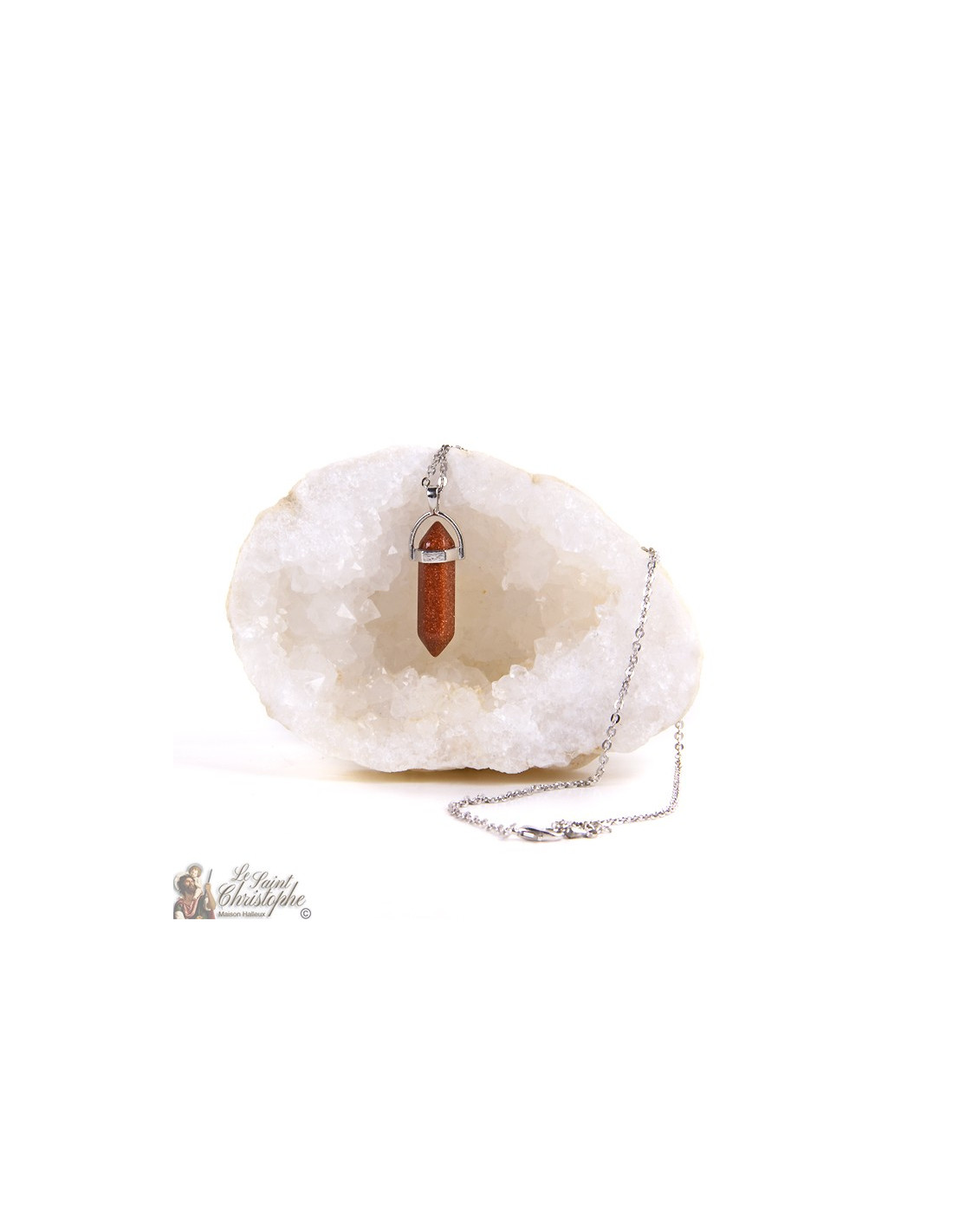 Collana in metallo placcato argento con pendente in pietra fine, sabbia dorata.