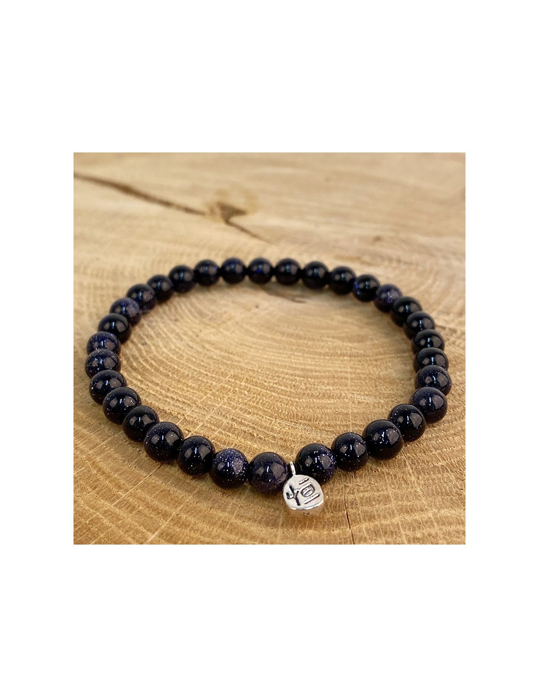 Questo braccialetto elastico in perline di pietra sintetica di sabbia blu è un tocco delizioso e misterioso da indossare al polso.