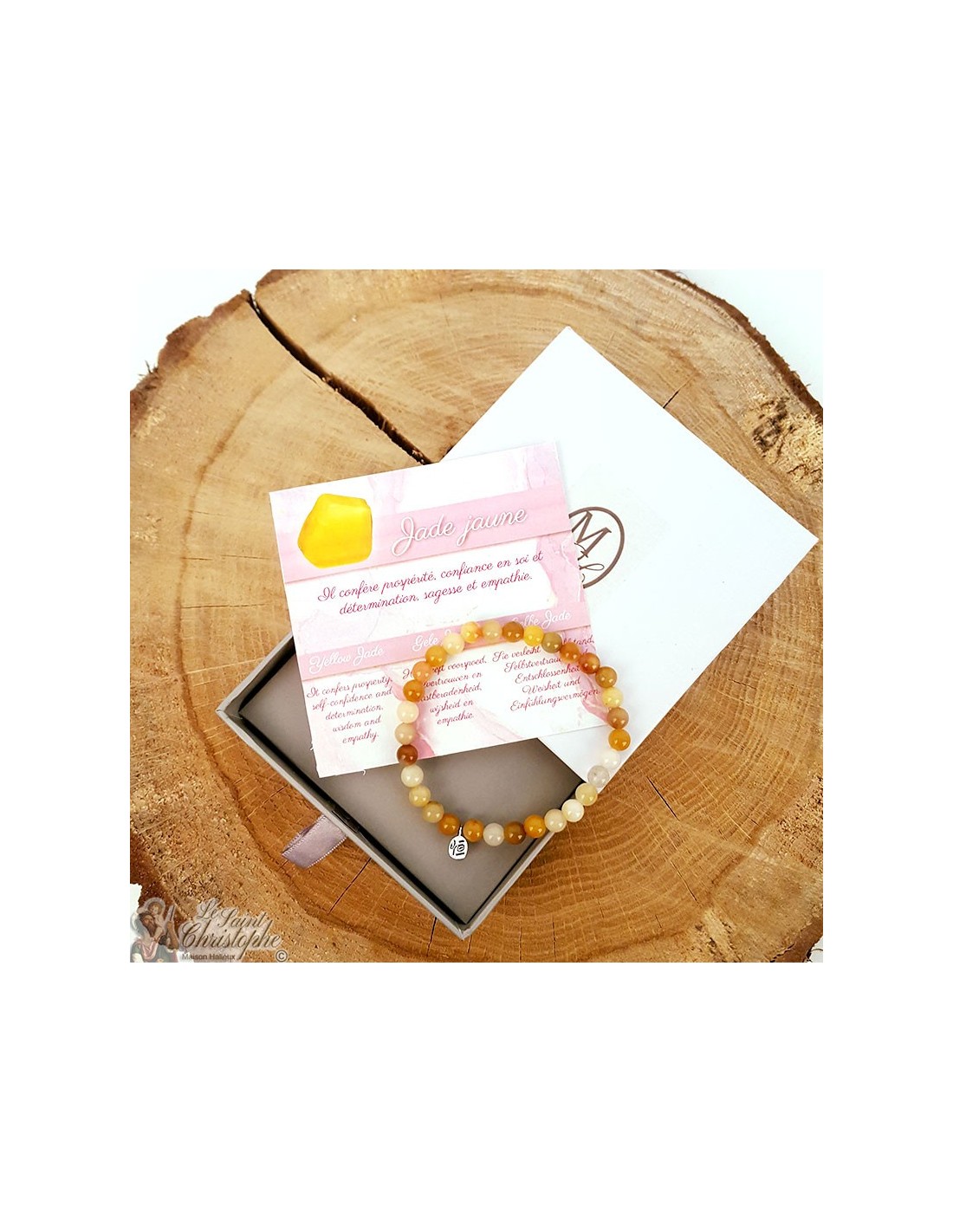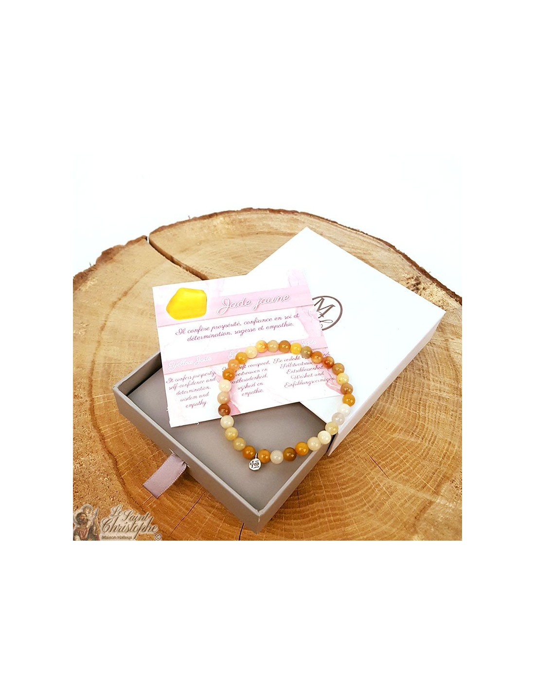 Questo braccialetto elastico fatto di pietre naturali di giada gialla è un delizioso tocco solare da portare al polso.