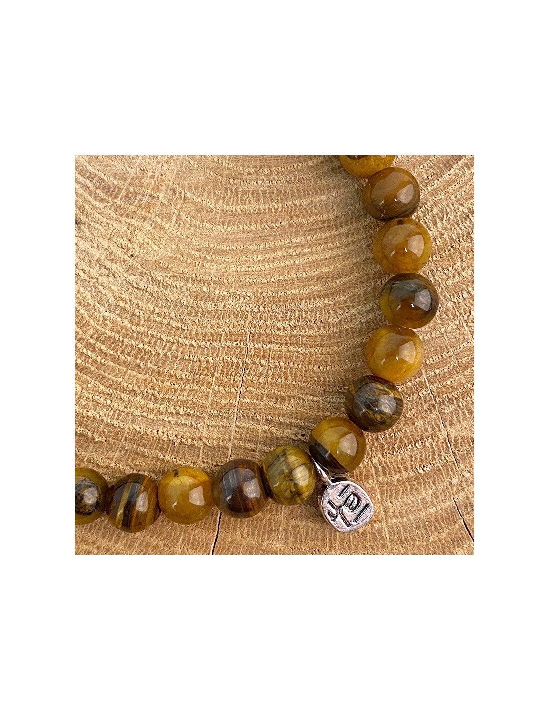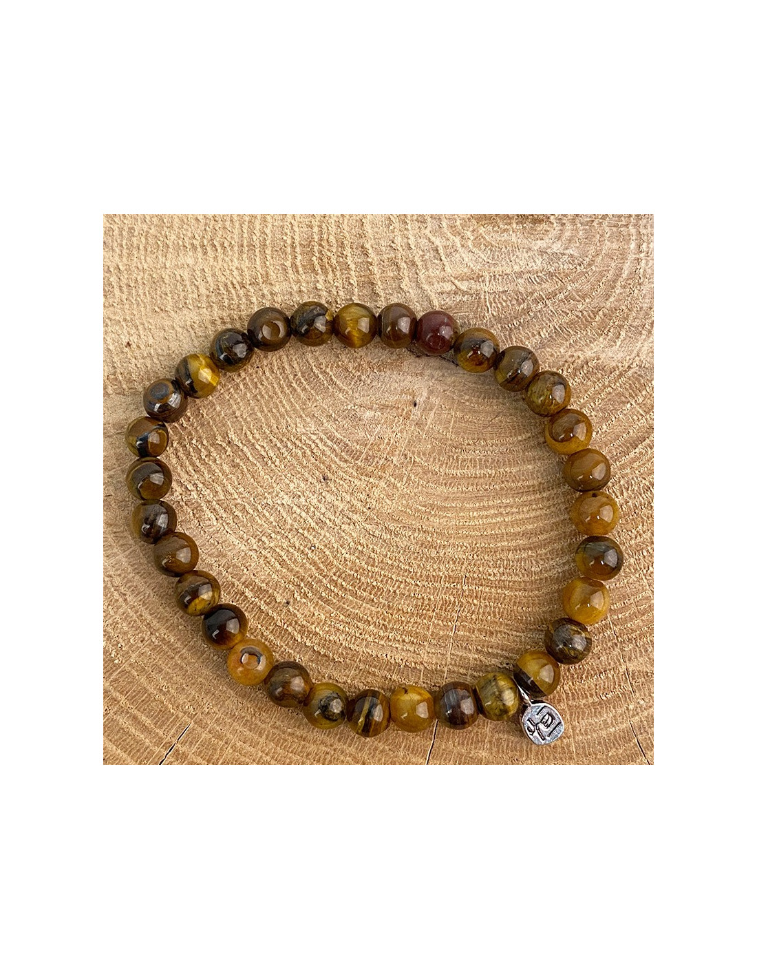 Bracciale con filo elastico in occhio di tigre, pietra naturale pregiata. Insieme ad un piccolo charm in argento, questo braccialetto dà un tocco morbido e sereno al tuo polso.