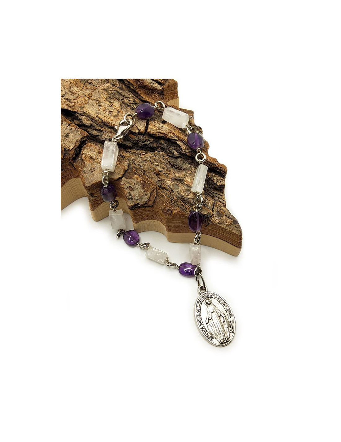 Bracciale con Medaglia della Vergine Miracolosa - Ametista e Cristallo di Rocca 2