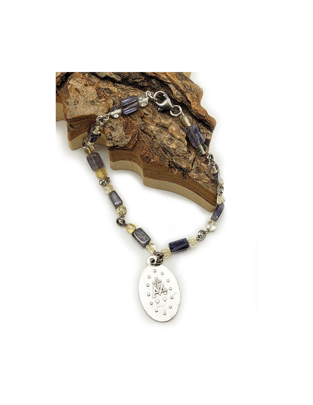 Bracciale con Medaglia della Vergine Miracolosa - Citrino e Tanzanite